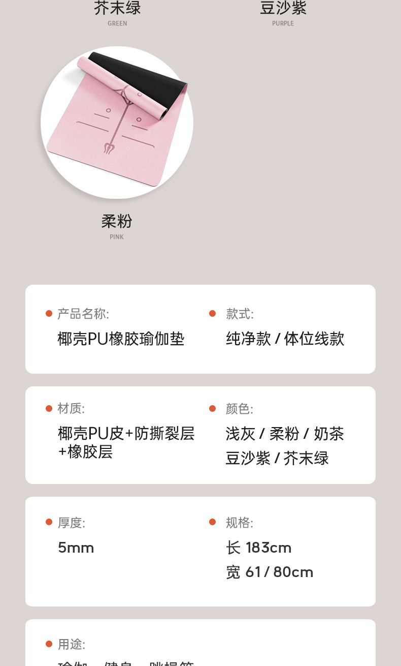 | Colores | Té con leche marrón,Línea de posición marrón del té con leche,Rosa suave,Línea de posición rosa suave,Púrpura de pasta de frijoles,Línea de postura púrpura de pasta de frijoles,Verde mostaza,Línea de posición del cuerpo verde mostaza |