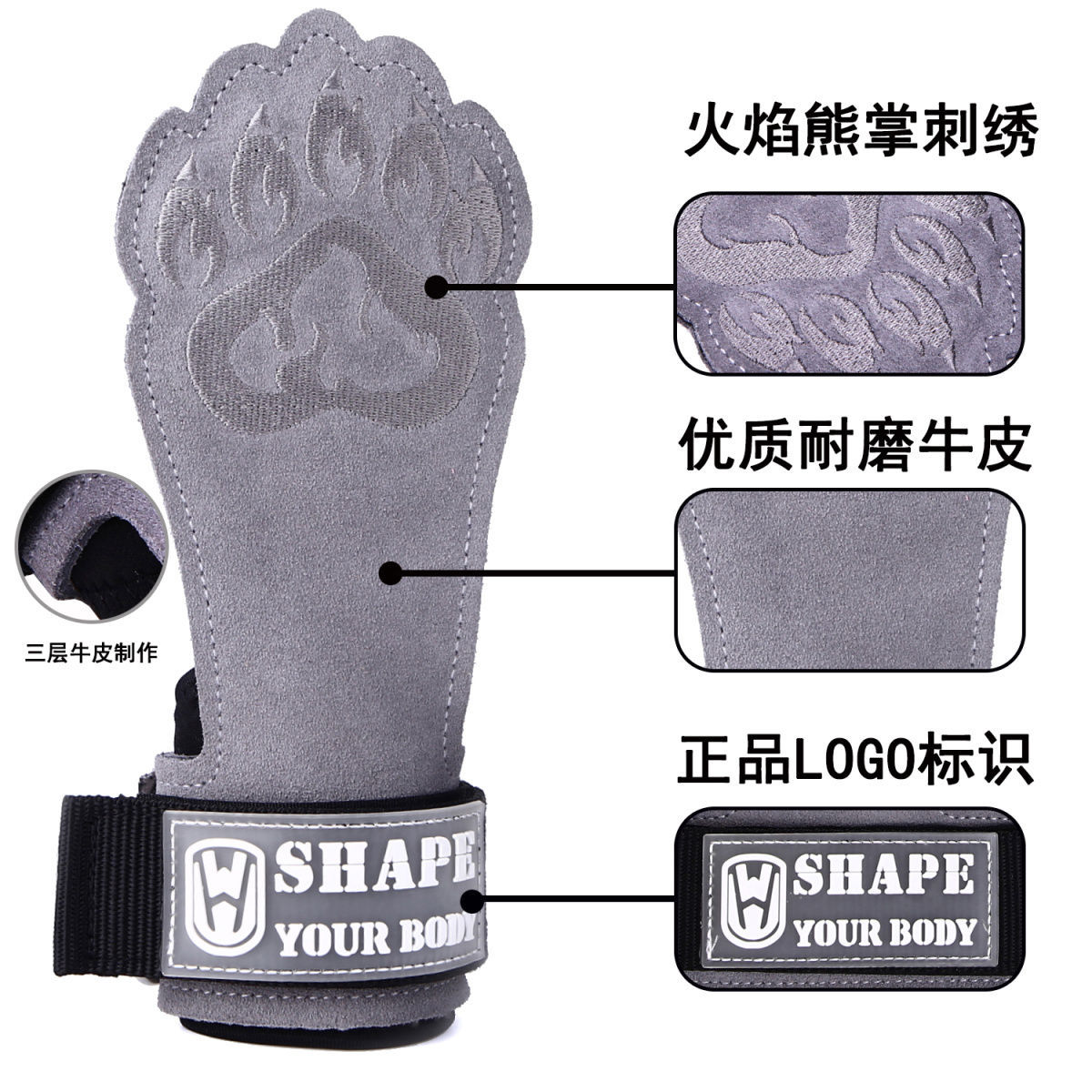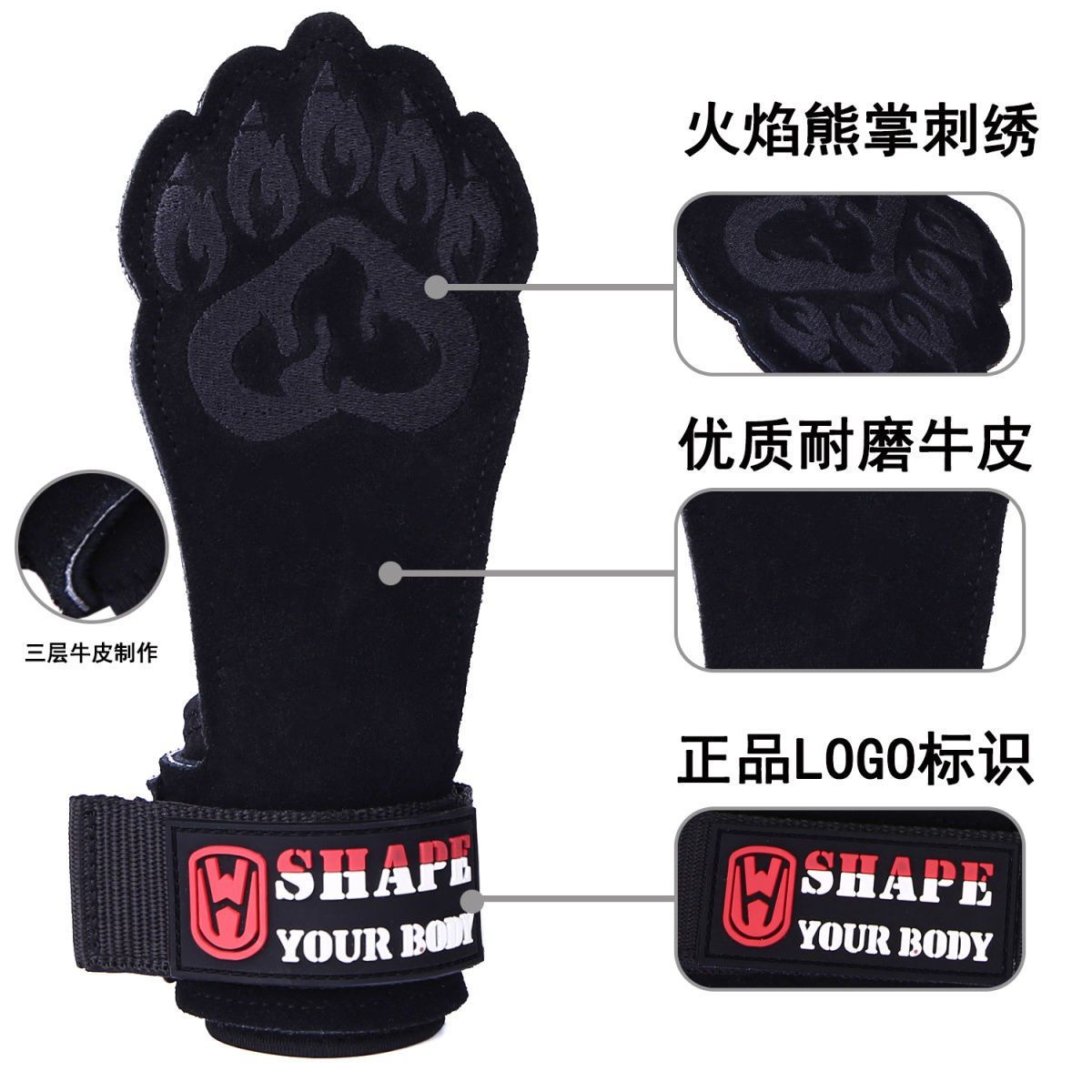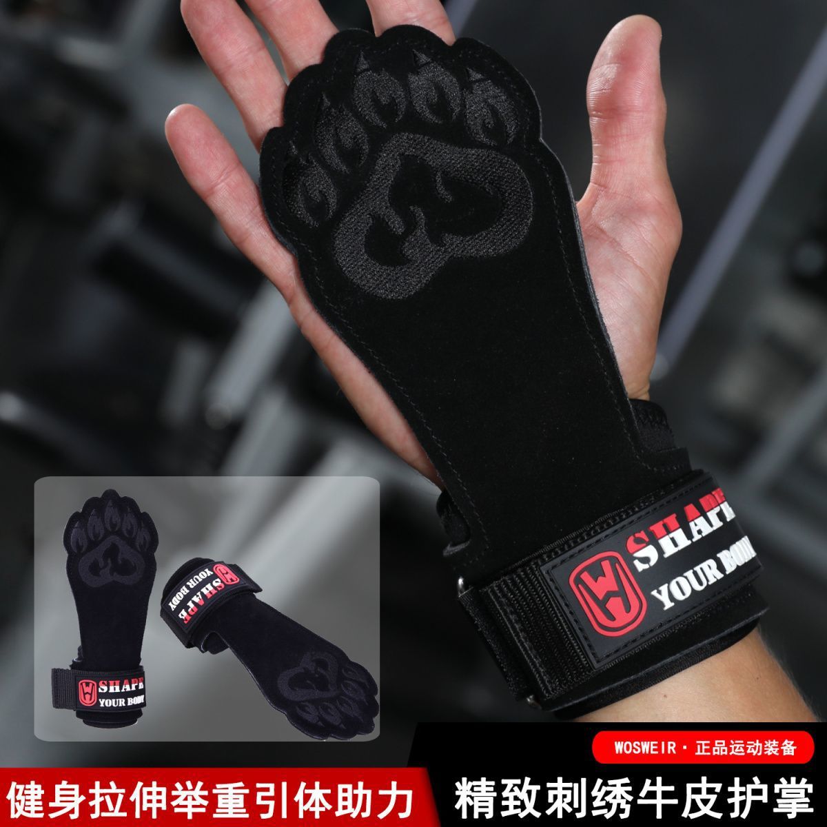 Protector de palma de piel de vaca de peso duro asistido, protector de muñeca de tres capas, guantes de fitness de agarre para hombres y mujeres, protector de mano con pull-ups de barra horizontal