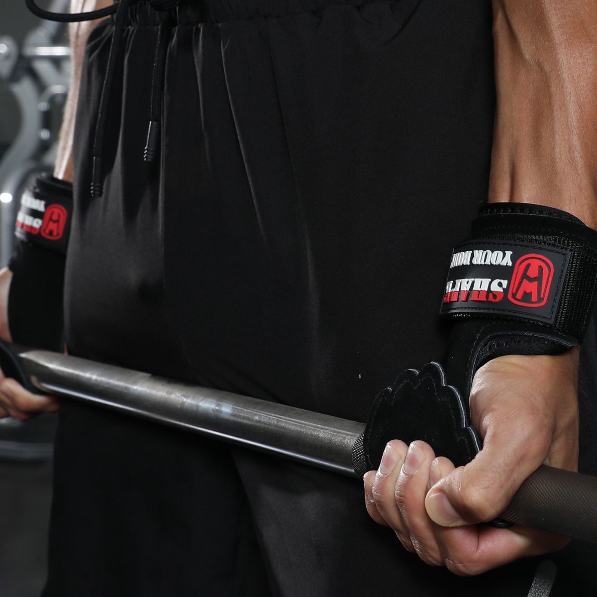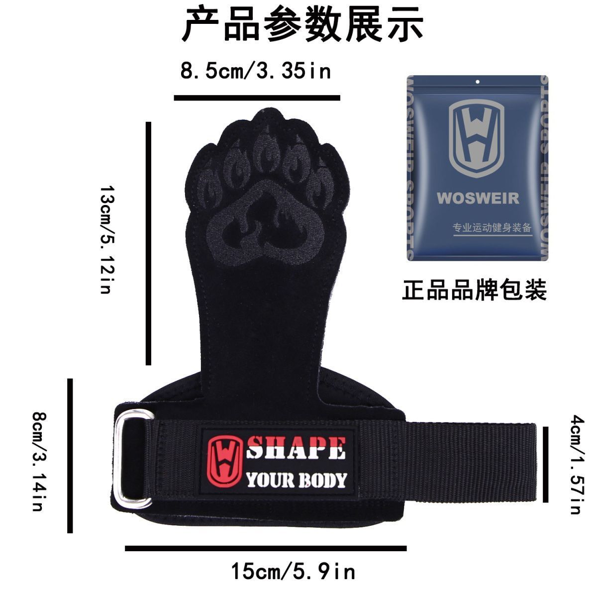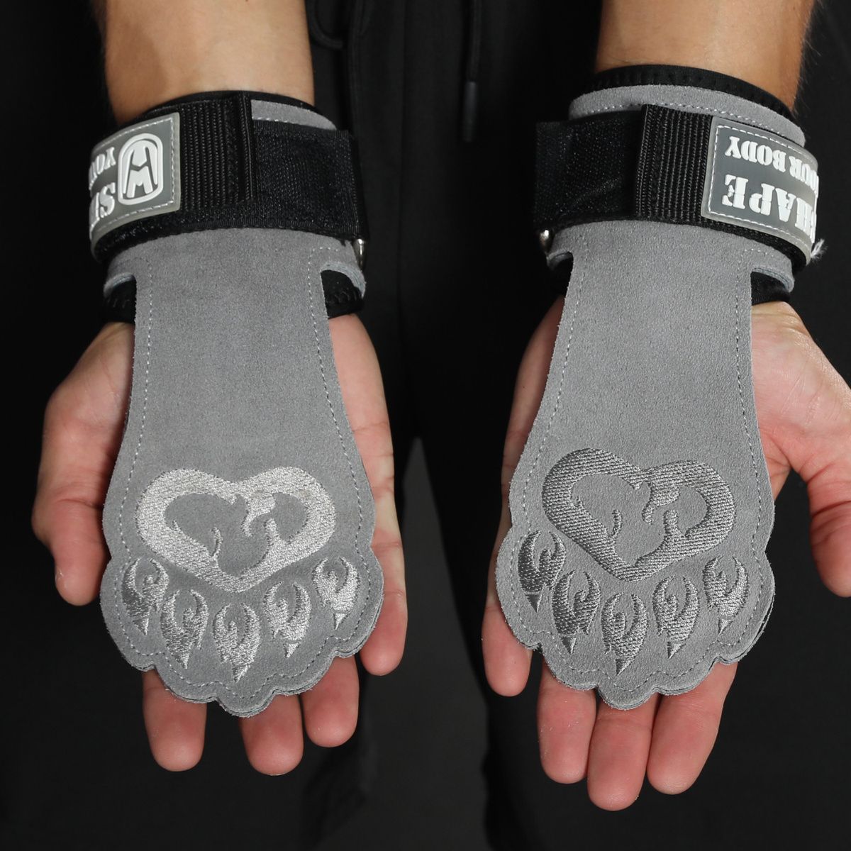 Protector de palma de piel de vaca de peso duro asistido, protector de muñeca de tres capas, guantes de fitness de agarre para hombres y mujeres, protector de mano con pull-ups de barra horizontal