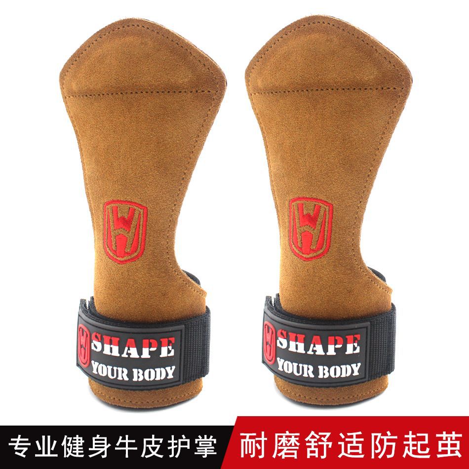 Cinturón de refuerzo de piel de vaca de peso duro, protector de palma, protector de muñeca, cinturón de agarre para hombres y mujeres, guantes de fitness, barra horizontal, pull up, protector de manos