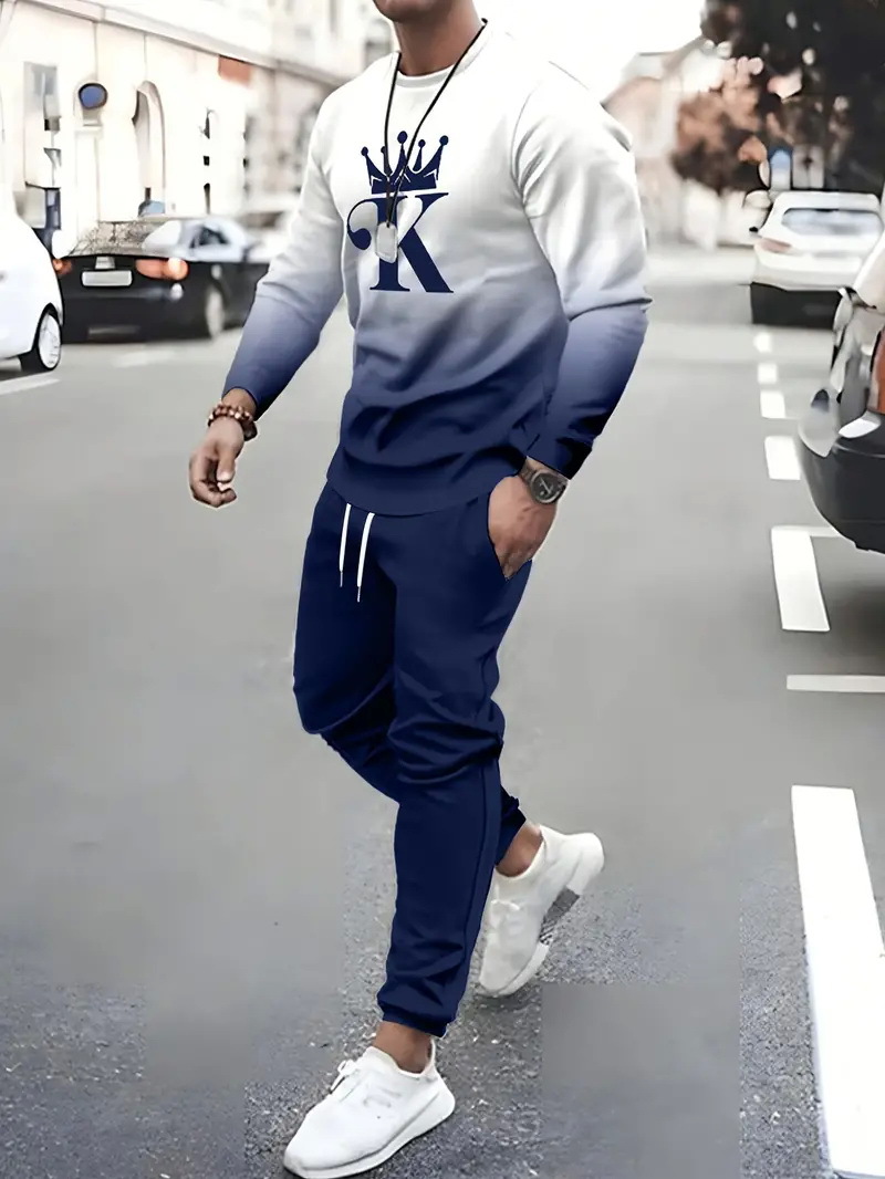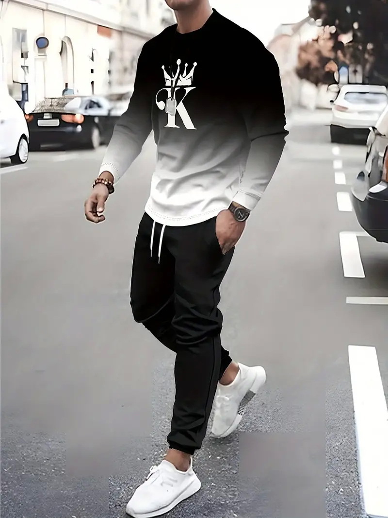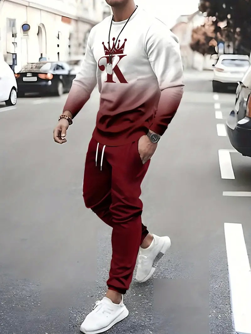 Nuevos productos de primavera EBAY AliExpress Amazon Traje de ocio deportivo para hombre Pantalones de suéter de cuello redondo con estampado 3D