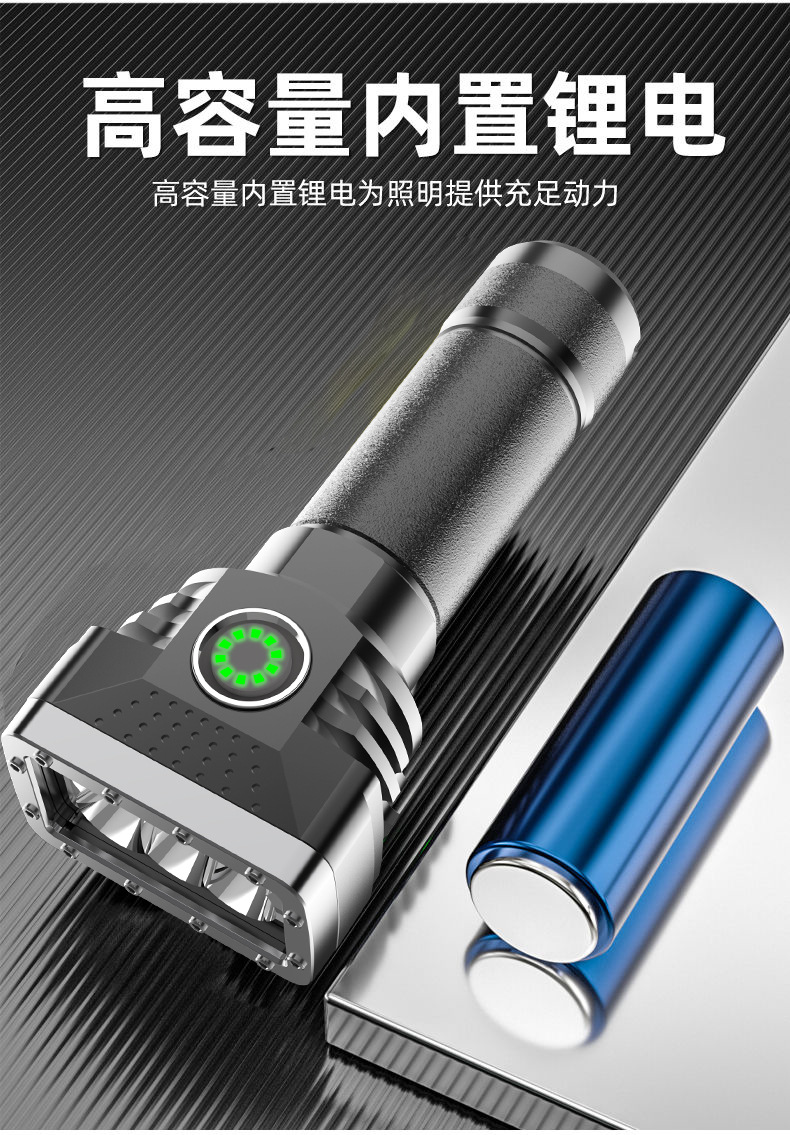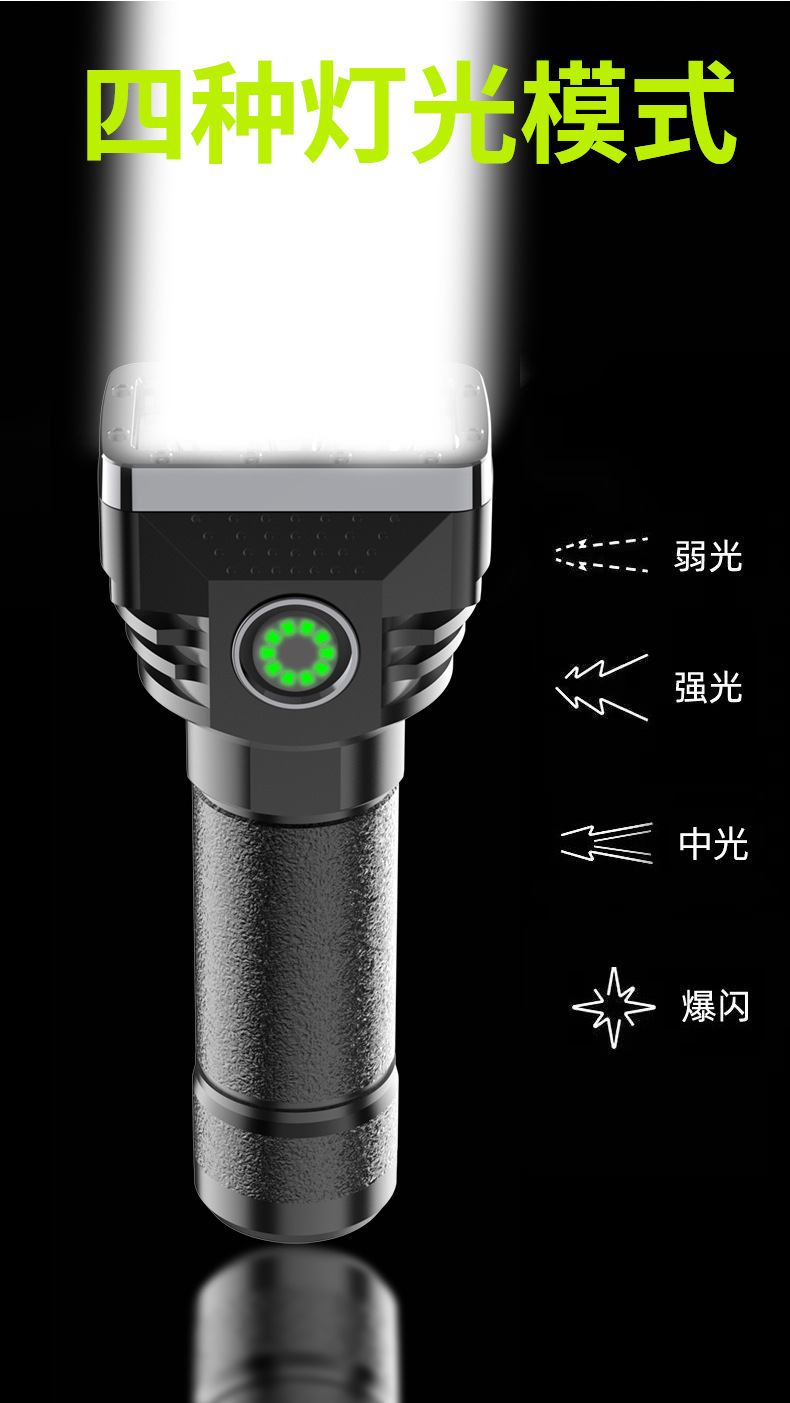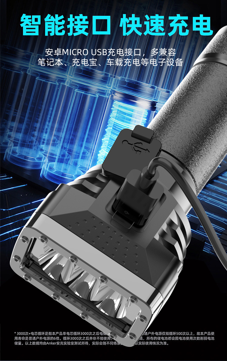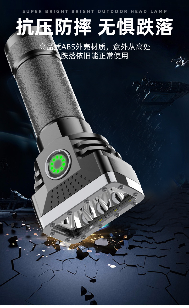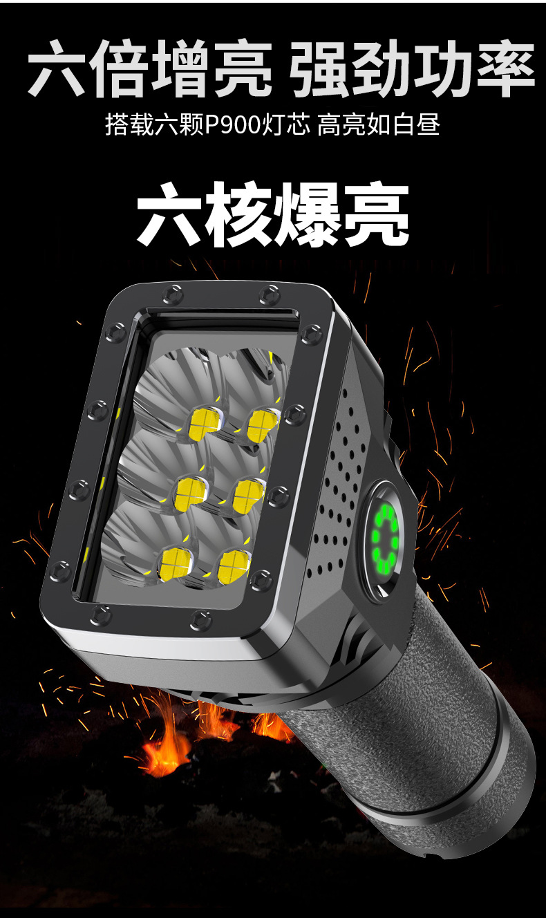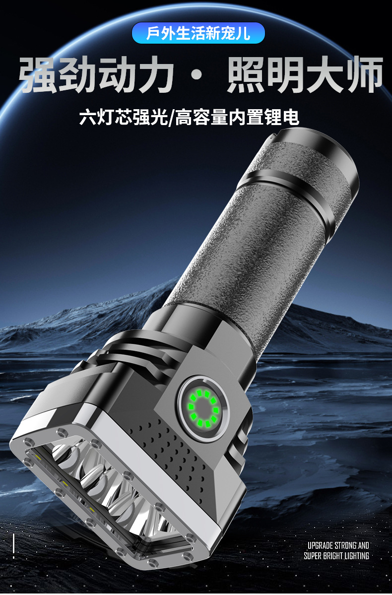 Linterna portátil al aire libre transfronteriza de seis lámparas de luz fuerte linterna cargada de alto brillo de largo alcance de cuatro engranajes hogar ajustable