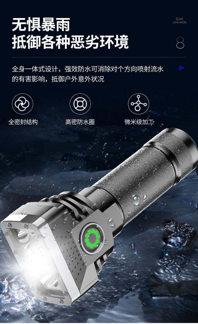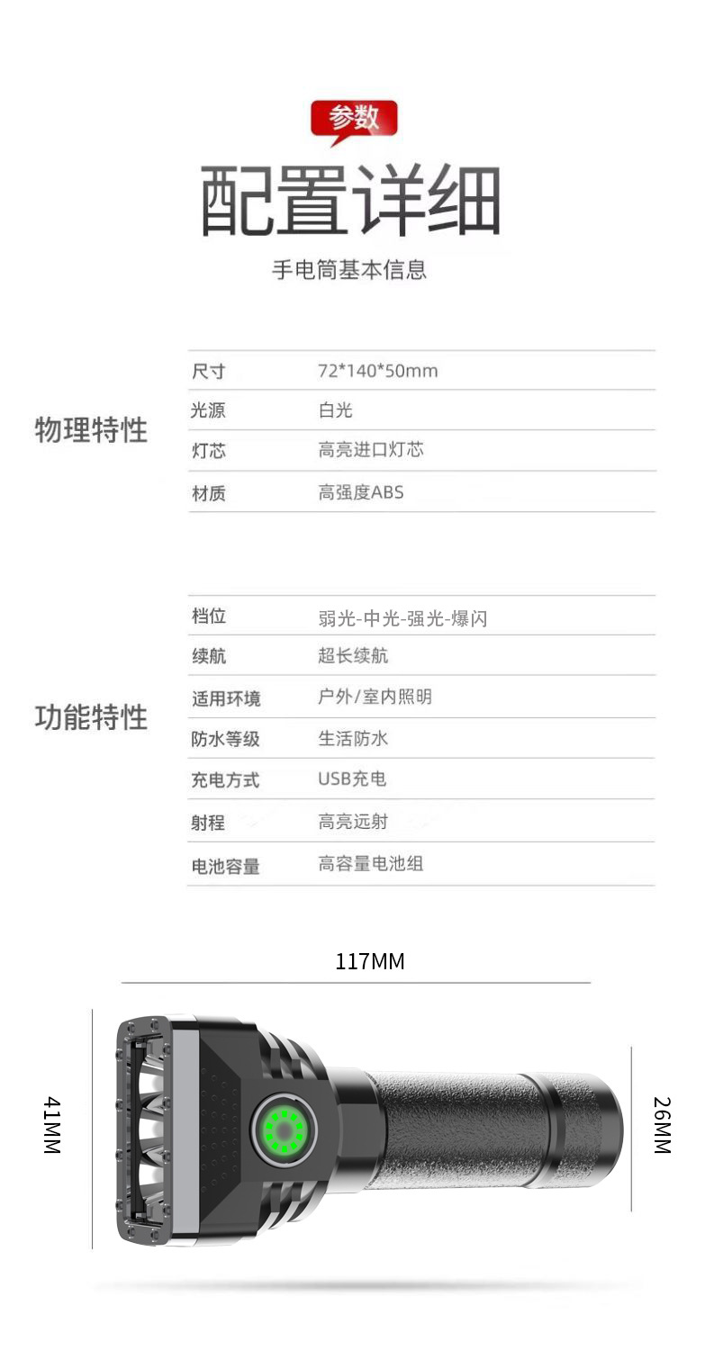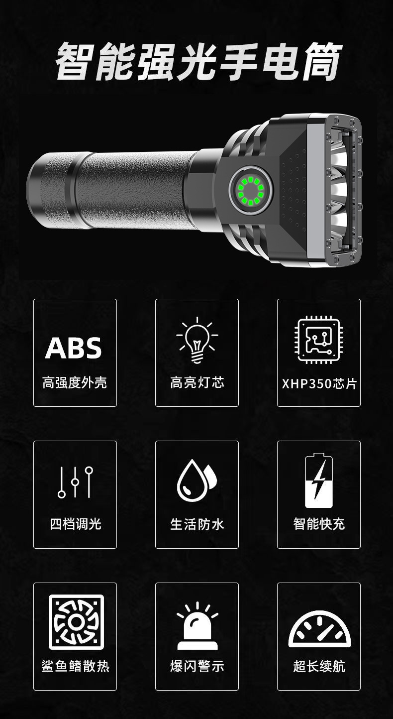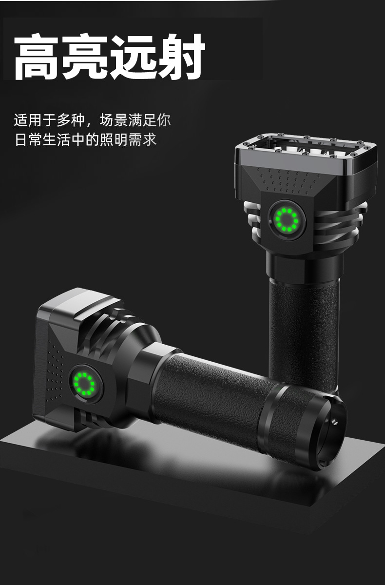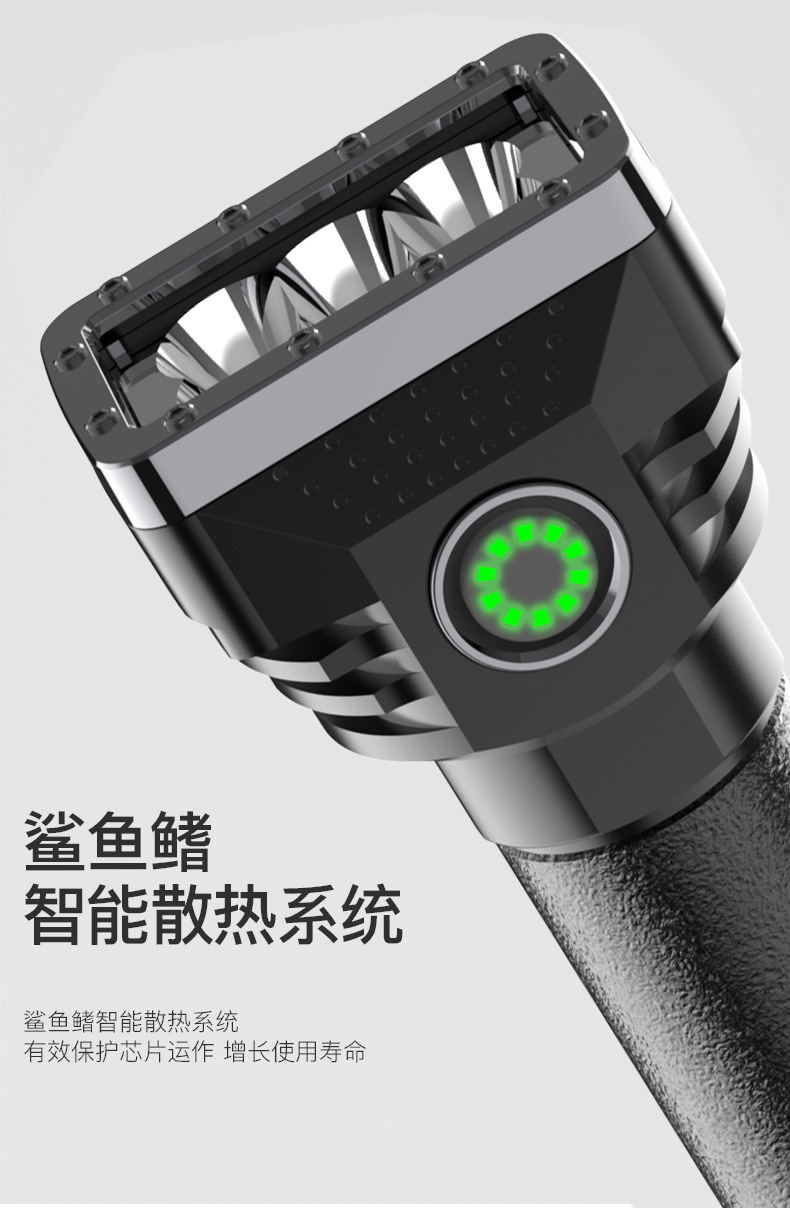 Linterna portátil al aire libre transfronteriza de seis lámparas de luz fuerte linterna cargada de alto brillo de largo alcance de cuatro engranajes hogar ajustable