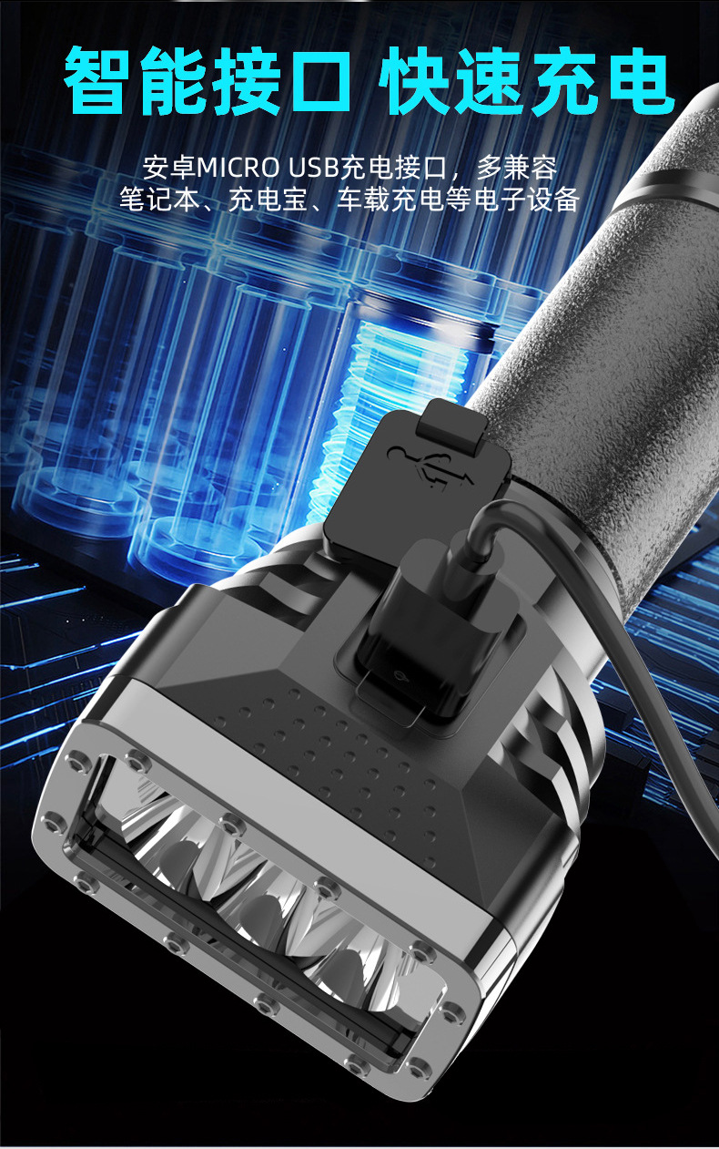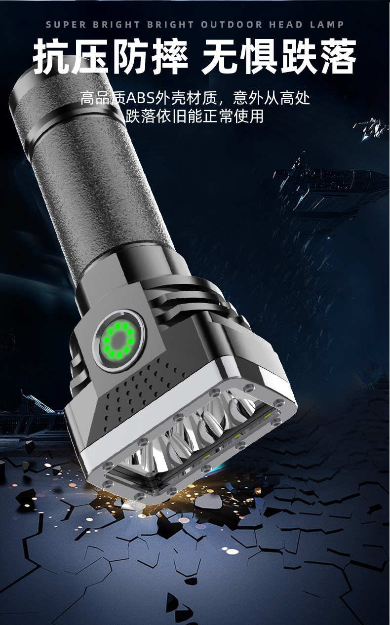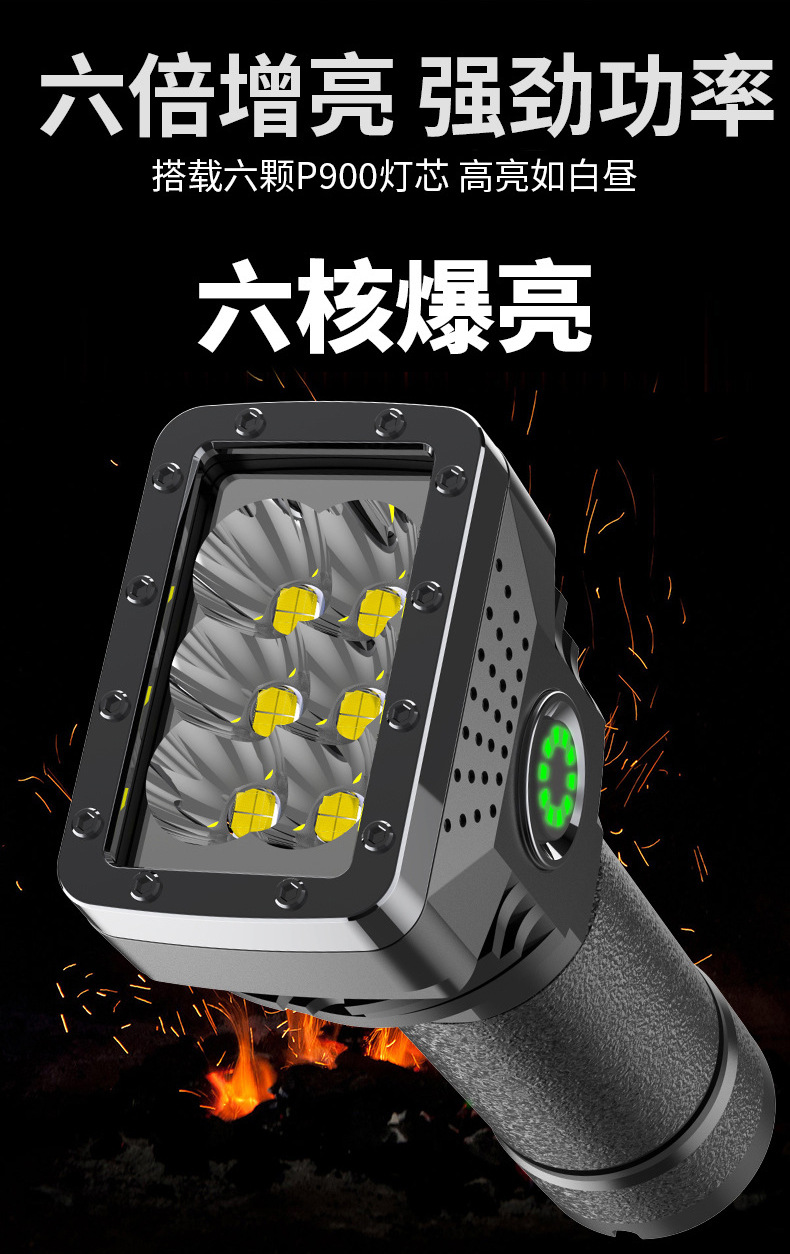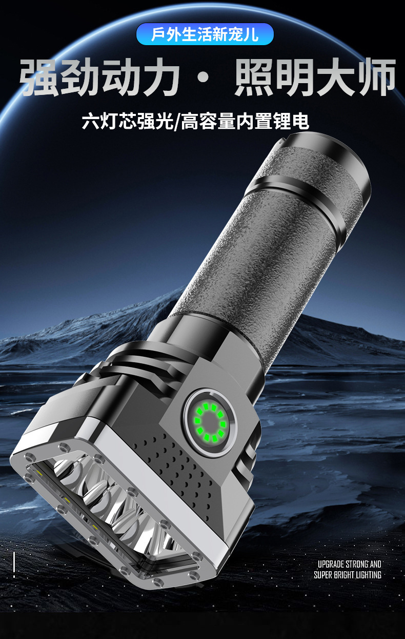 Nueva linterna, linterna portátil, linterna de luz fuerte con cuentas de seis luces, carga, alto brillo, largo alcance, ajuste de cuatro velocidades