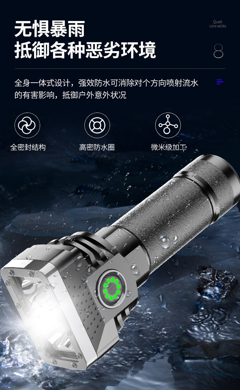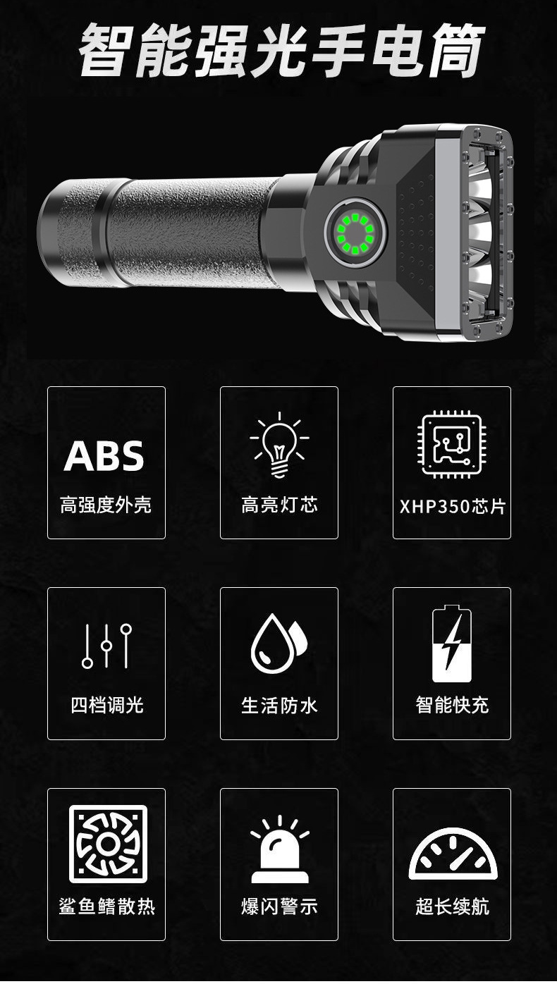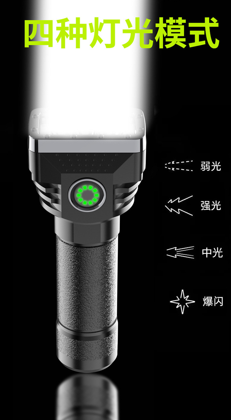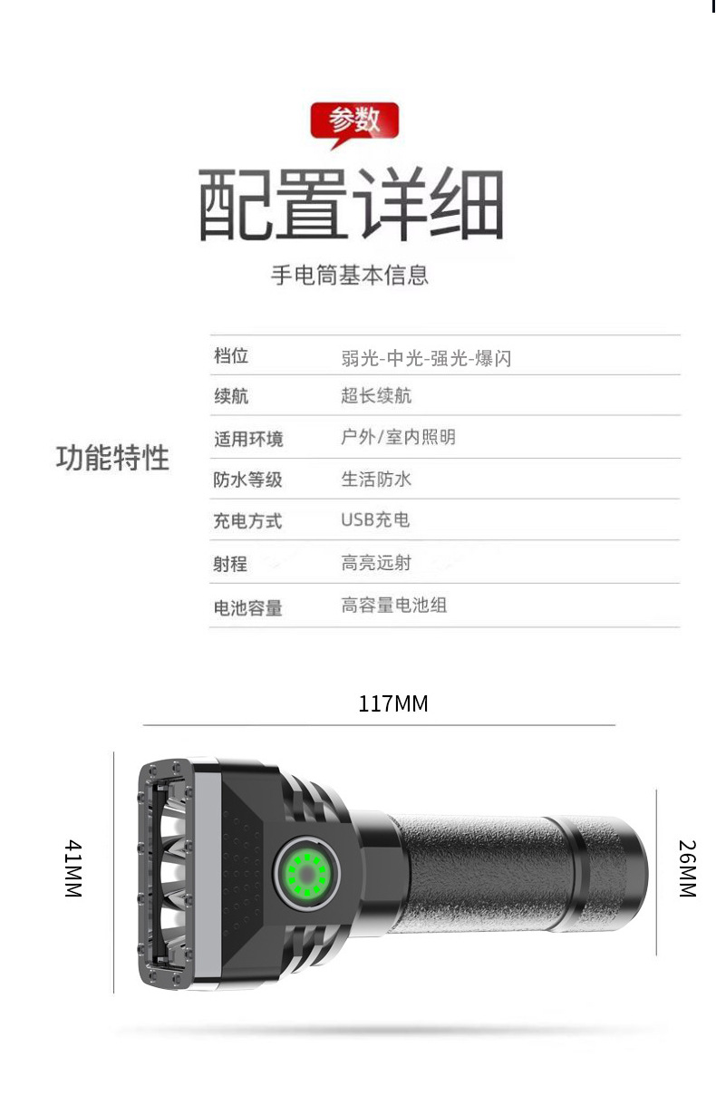 Nueva linterna, linterna portátil, linterna de luz fuerte con cuentas de seis luces, carga, alto brillo, largo alcance, ajuste de cuatro velocidades