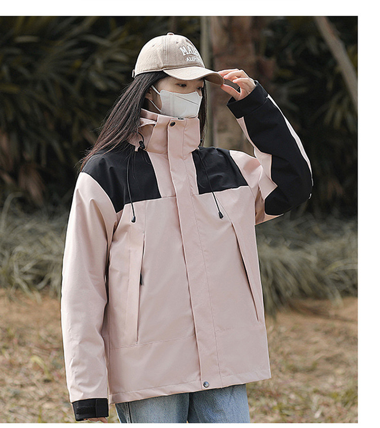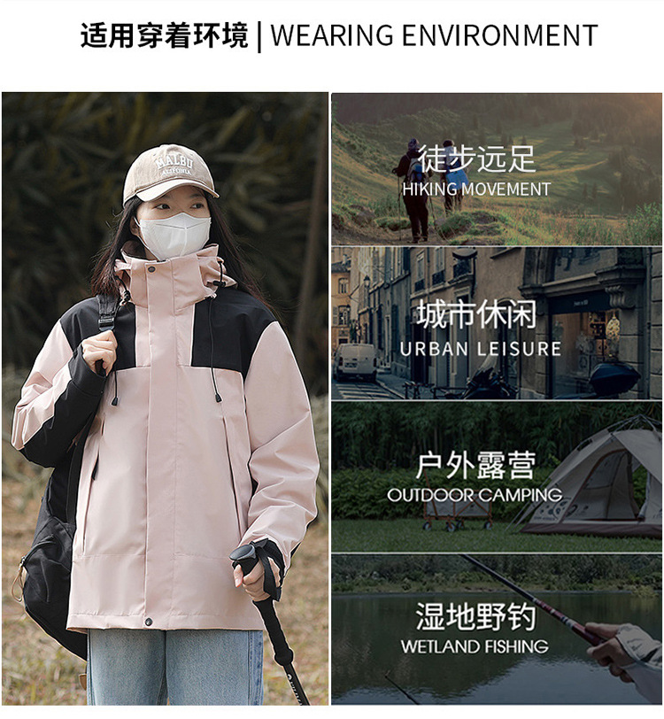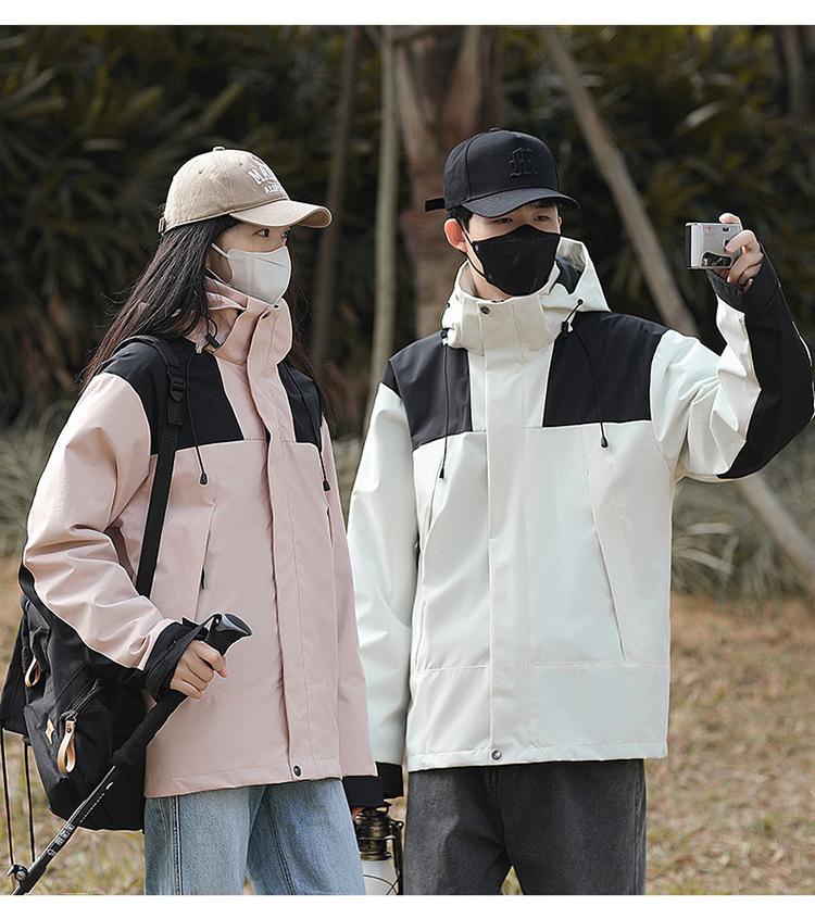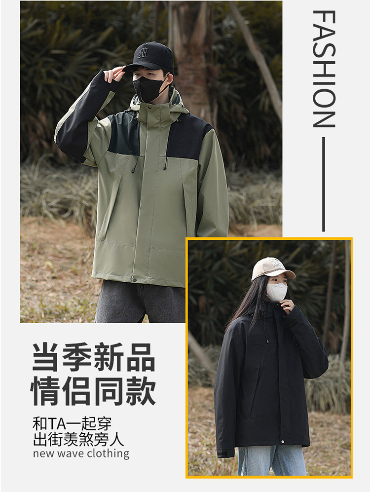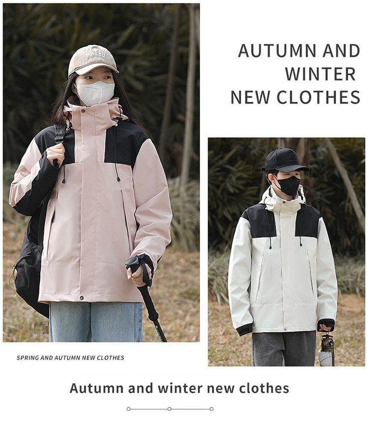 Beijia Mismo estilo primavera y otoño chaqueta impermeable a prueba de viento pareja de hombres al aire libre de una sola capa a juego ropa de montañismo de moda mujer
