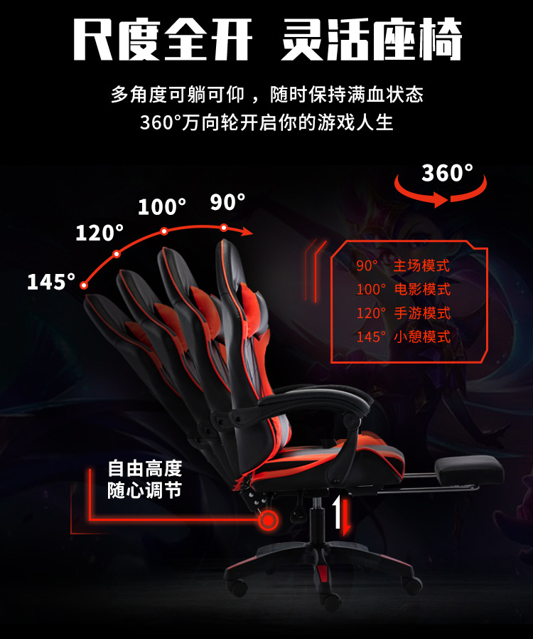 Silla de juegos silla de juegos silla de carreras silla giratoria elevadora reclinable Anji ergonomía gira de silla de oficina