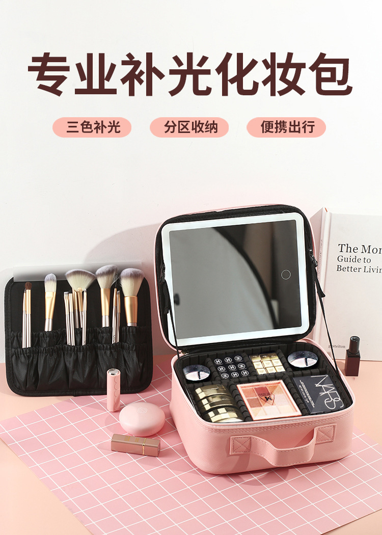 Bolsa de cosméticos profesional LED de gran capacidad para mujer, impermeable, portátil, portátil y portátil, bolsa de almacenamiento de cosméticos multicapa para estudiantes