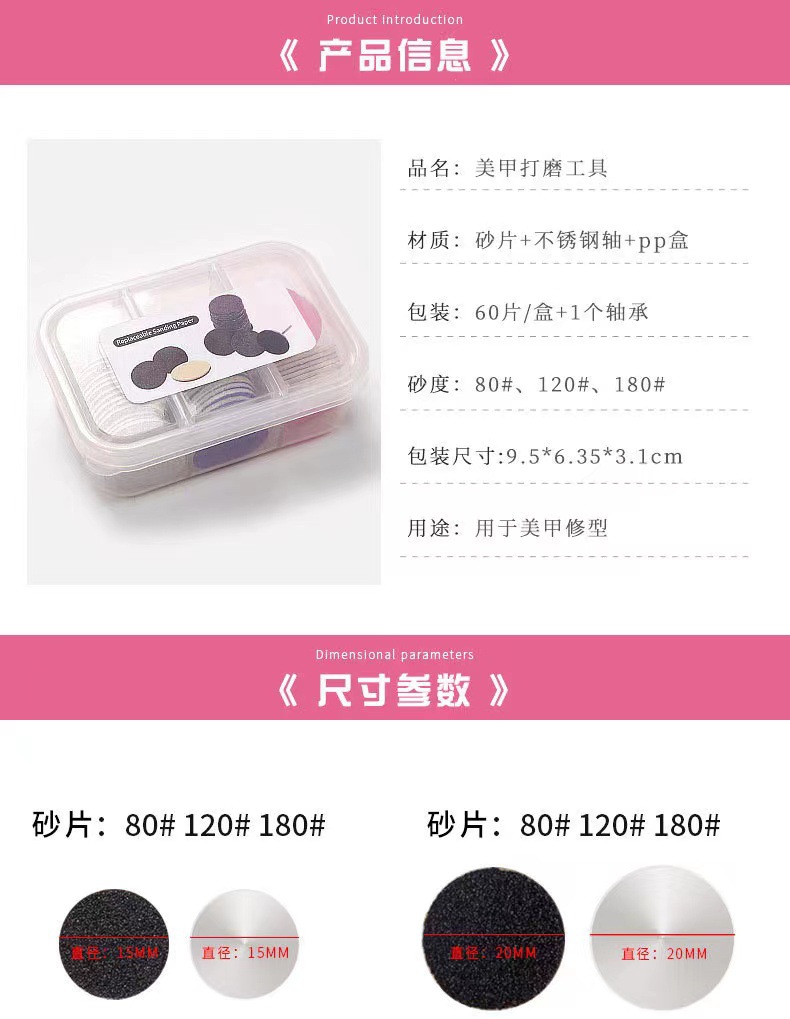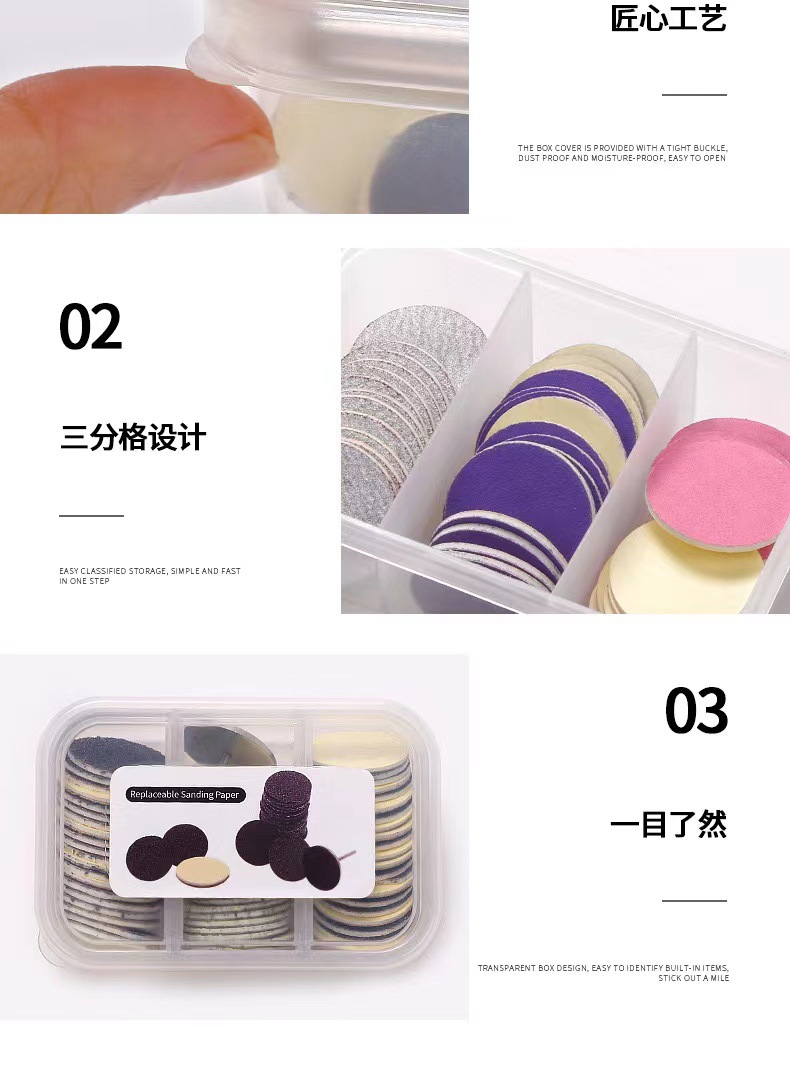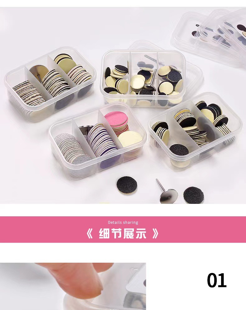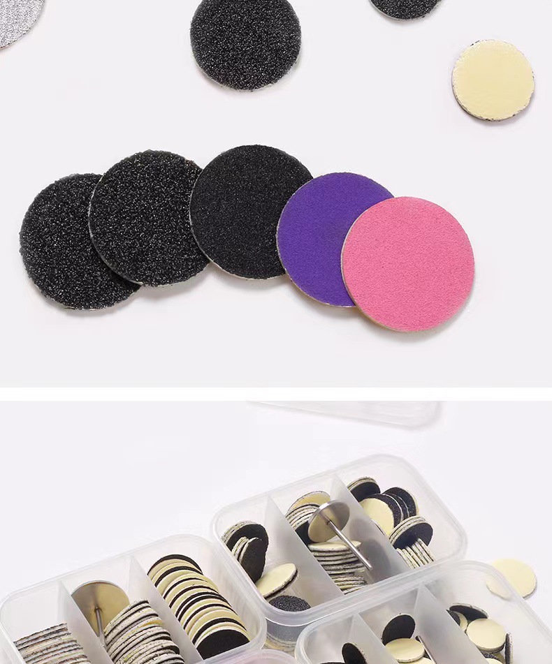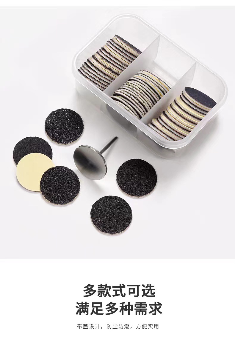 美甲打磨砂片含砂片轴 小三格盒装60片足底去死皮硬茧磨脚砂片