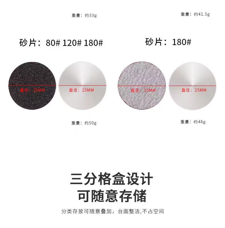 25mm pequeña caja de tres cajas de arena negro 80 #, blanco 150 #, rosa 240 # (con eje)