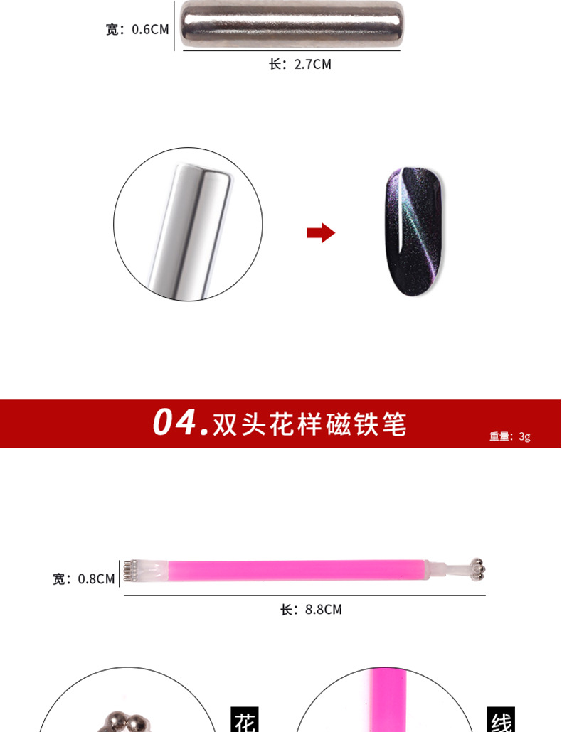Herramientas para decoración de uñas, imán magnético súper fuerte para ojo de gato con varios estilos, imán para gel de ojo de gato, varita magnética multifuncional pequeña