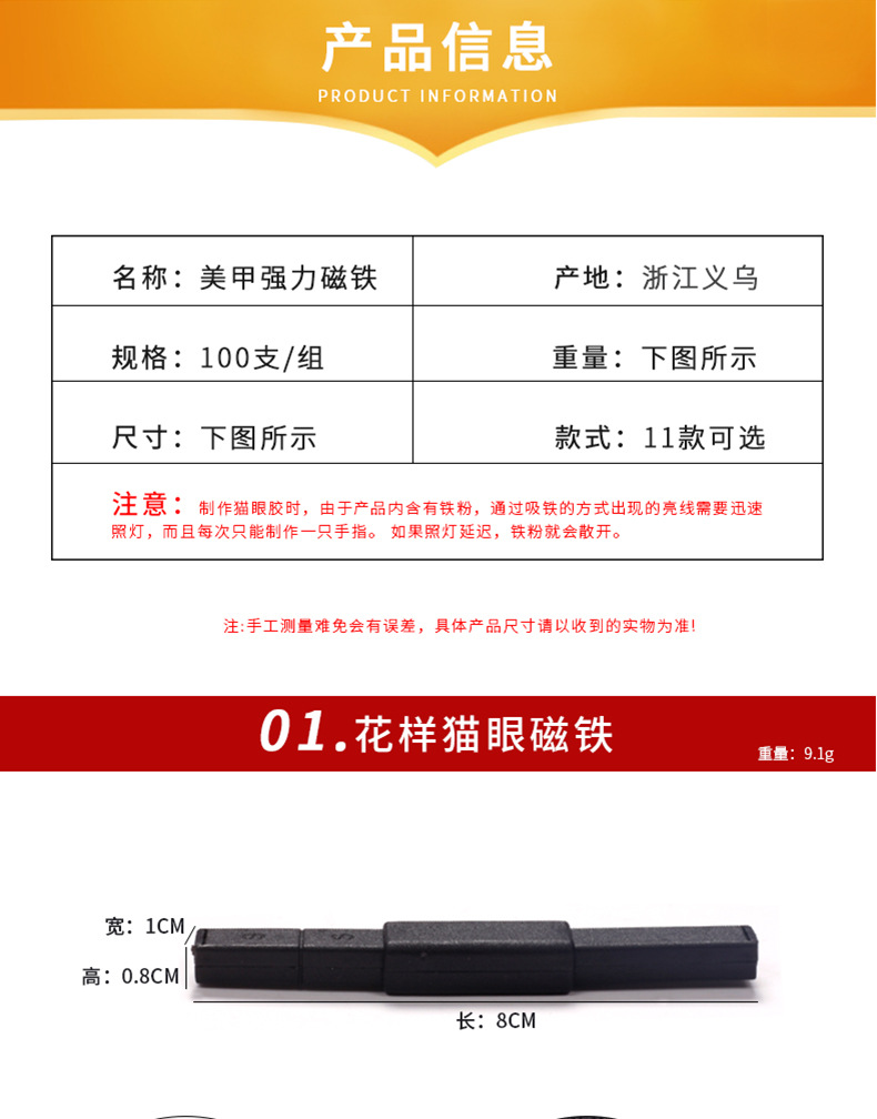 Clasificación de coloresVarita mágica de doble punta con mango brillante rosa + imán de bola de 8 mm,Varita mágica de doble punta con mango brillante plateado + imán esférico de 8 mm,Varita mágica de doble punta con mango brillante dorado + imán esférico de 8 mm,Varita mágica de doble punta con mango brillante verde + imán esférico de 8 mm,Varita mágica de doble punta con mango esmerilado plateado + imán esférico de 10 mm,Varita mágica de doble punta con mango esmerilado rosa + imán de bola de 10 mm,Varita mágica de doble punta con mango mate dorado + imán esférico de 10 mm,Varita mágica de doble punta con mango mate negra + imán esférico de 10 mm,Paquete de 2 imanes de bola (10 mm + 8 mm),Imán cilíndrico con mango negro CT-01,Imán cilíndrico CT-02 con mango amarillo.,Maquillaje nude cilíndrico CT-03,Imán universal CT-04,CT-05 engrosamiento de una sola cabeza,Mango gris grueso de doble cabezal CT-06,Mango negro grueso de doble cabeza CT-07,Pluma de flor de doble cabeza CT-08,Imán para bolígrafo ojo de gato CT-09,CT-10 de una sola cabeza delgada,CT-11 imán fuerte de doble cabeza,Imán de ojo de gato largo CT-12,Imán de ojo de gato corto CT-13,Bolsa de imán redonda de 12 piezas,12 piezas en caja de imán redondo,Imán de aro dorado,Juego de 4 piezas de imán de ojo de gato multifuncional,Imán cuadrado CT-15 (individual),Imán de ojo de gato largo CT-16 (más funda protectora),Imán cilíndrico grueso CT-17,Imán de ojo de gato largo CT-18,CT-19 imán cilíndrico grande,Imán rosa CT-20 3 en 1,CT-21 púrpura 3 en un imán,Imán cruzado multifuncional-negro [fuerte magnético],Imán cruzado multifuncional-rosa [fuerte magnético],Imán cruzado multifuncional-negro [magnético débil],Imán cruzado multifuncional-rosa [imán débil],Imán amarillo con mango de garra de gato,Imán blanco con mango de garra de gato,Imán gris con mango de garra de gato,Imán negro con mango de garra de gato,Imán rosa con mango de garra de gato,Pluma magnética-negro,Imán de patrón-Forma de línea No1,Imán de patrón-sarga No2,Imane de patrón-fuente No3 m,Imán de patrón-Forma de pluma No4,Imán de patrón-No5 en ángulo recto,Imán de patrón-Rómbico No6,Imán de patrón-No7 forma de onda de agua,Imán de patrón-No8 en forma de corazón de amor,Imano-No9 símbolo de patrón,Juego de 5 imanes de patrón,Juego de imanes de patrón-9,Imán de cigarro,Imán de cigarro [3 en 1],Imán de cigarro [color madera],Pluma magnética de bola de acero CT-22,Imán del cubo de Rubik CT-23,Imán de bola de acero CT-24,CT-25 imán de cabeza redonda,Juego de imanes de patrón-9 [rosa],Mango de polvo cilíndrico CT-26,Imán de ojo de gato de uñas seis en uno-[negro],Imán de ojo de gato de uñas seis en uno-[rosa],Pluma magnética de bola de acero CT-27,Imán de palo de hadas de oro CT-28,Imán anti-caída de grano de madera,Imán fuerte * 1 alambre de hierro * 5,Juego de imán de ojo de gato de uñas-[estilo J],Cuadros CT-30 (12 piezas/paquete),Imán en forma de Y-negro,Imán en forma de Y-plata,Imanes de patrón tipo amor-rosa,Imán de serpiente de amor desmontable # rosa,Imán de serpiente de amor desmontable # verde,Imán de serpiente de amor desmontable # azul oscuro,Imán cohete desmontable # color madera,Imán cuatro en uno desmontable en forma de Y # negro,Imán cuatro en uno desmontable en forma de Y # gris,5 imanes cilíndricos en forma de Y 5 piezas/juego,CT-33 imán de doble cabeza verde,Pinzas magnéticas de doble punta con diseño de flor de ciruelo y mango negro.,Imán de ojo de gato francés de doble punta,Imán con patrón de cocodrilo CT-33,Piezas de hierro huecas tipo ojo de gato (a granel)