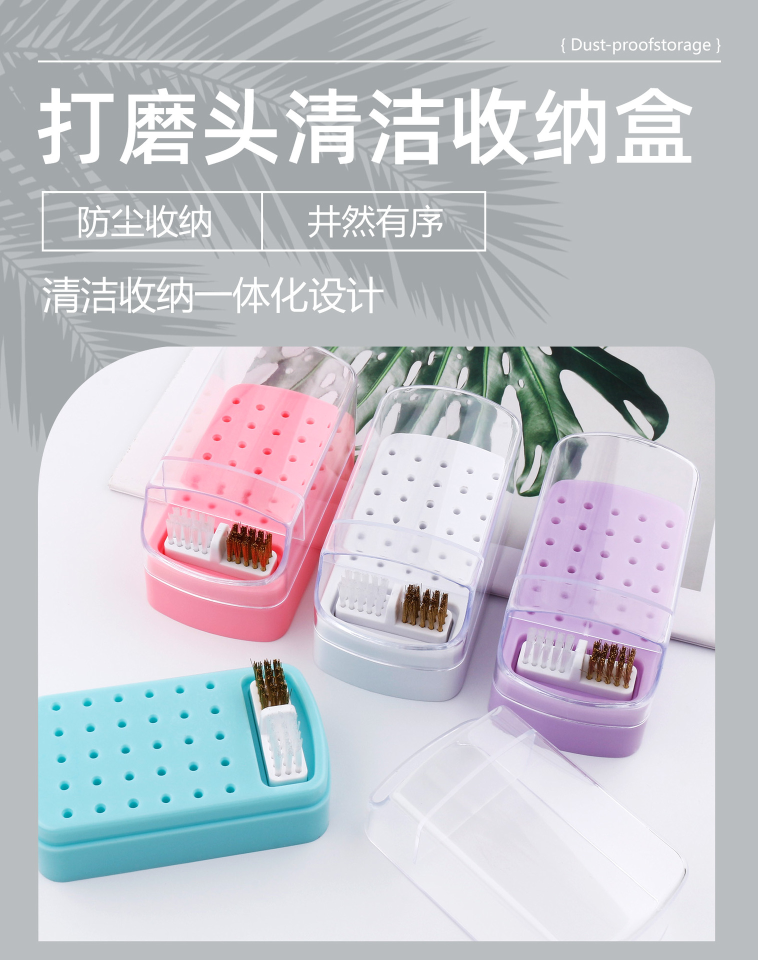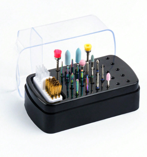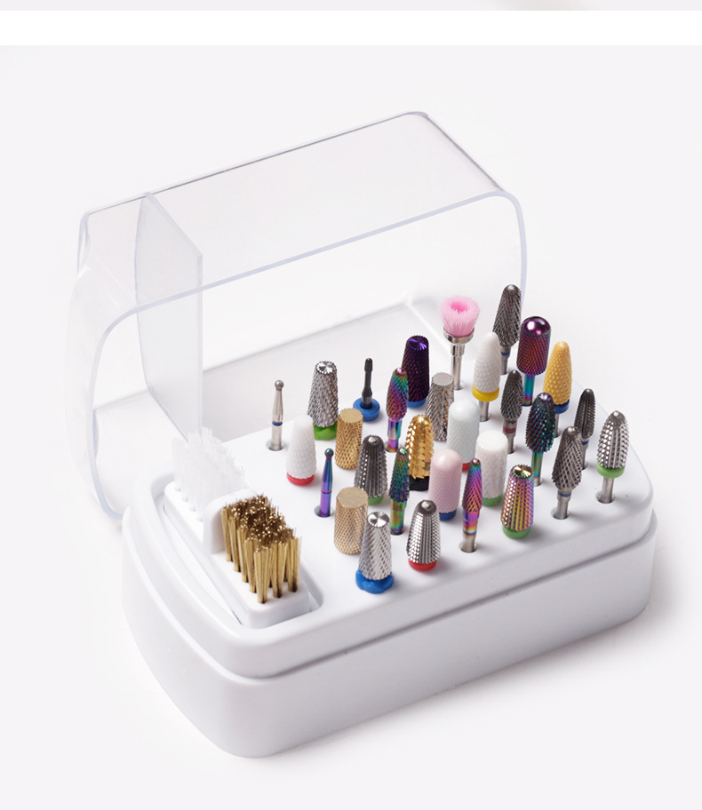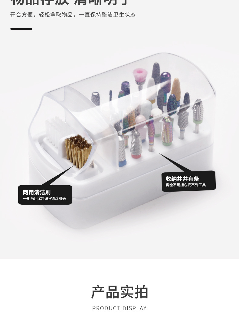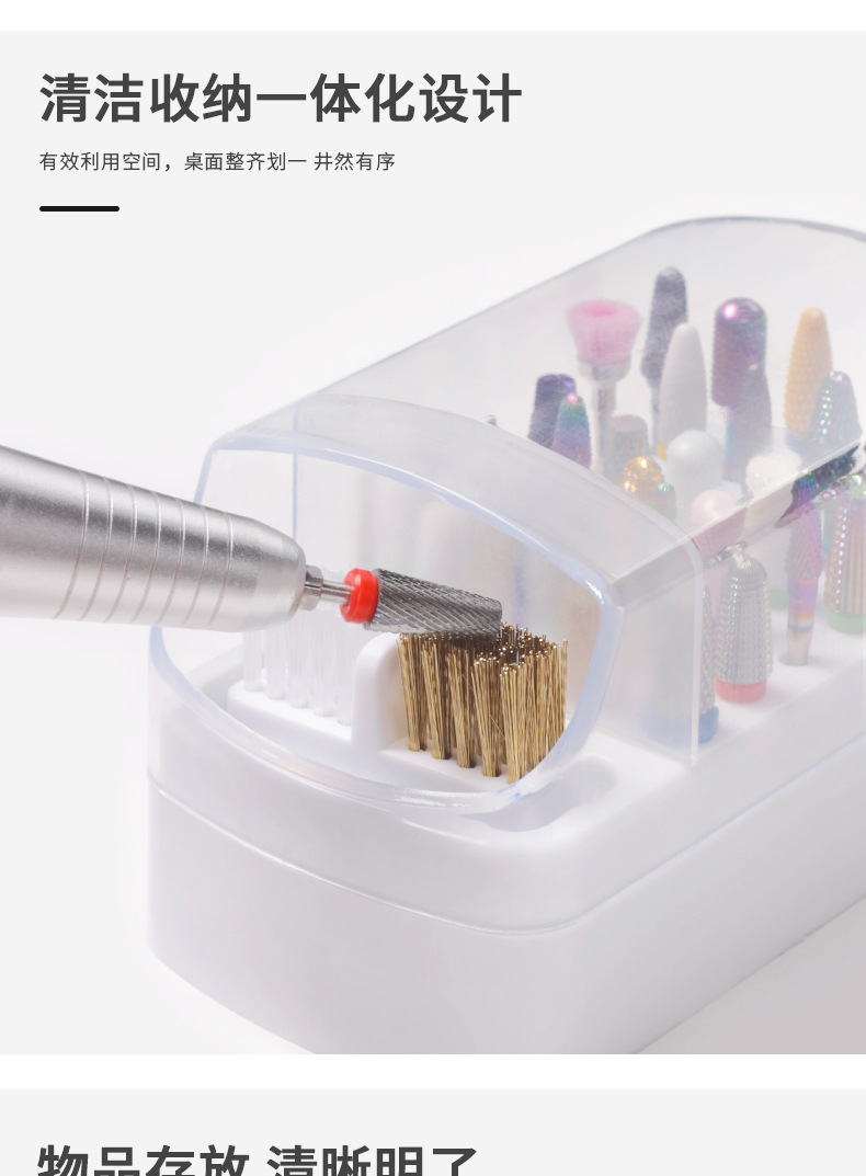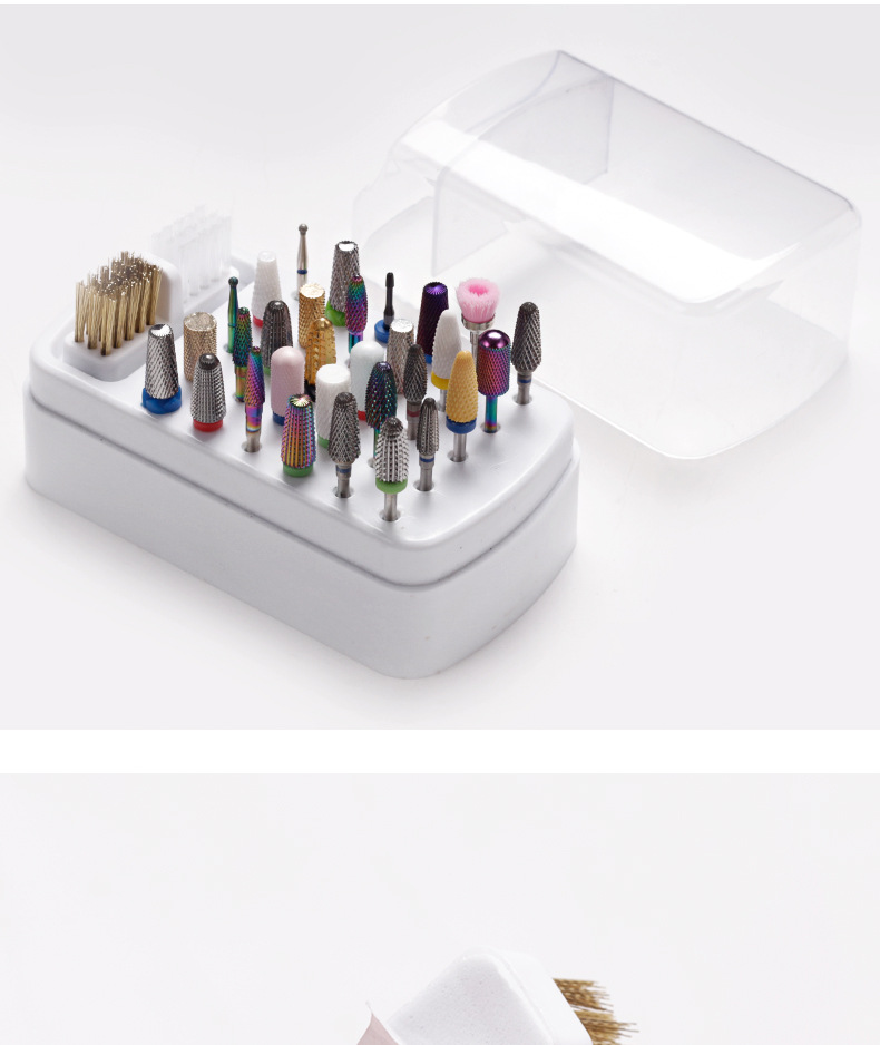 Transfronteriza nueva manicura 30-agujero de molienda cabeza de almacenamiento de limpieza dos-en-uno manicura de molienda caja de la cabeza de limpieza caja de exhibición de polvo