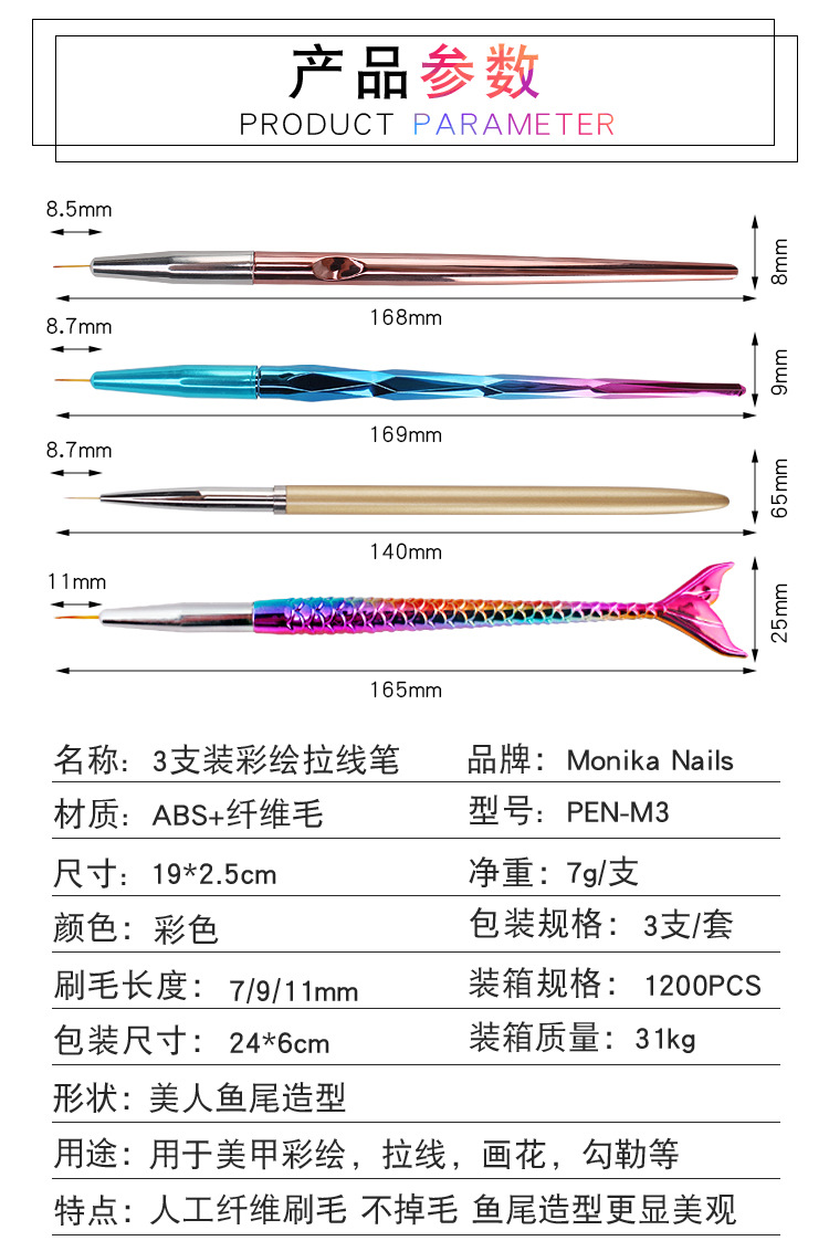 Cruz-Frontera de uñas Arte 3 unidades traje dibujo pluma talla pluma cepillo clavo herramienta traje