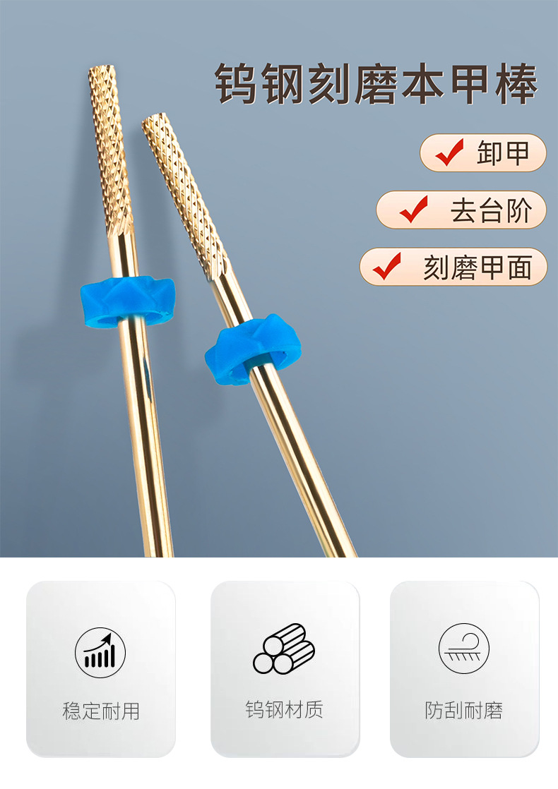 Uña de tungsteno de acero pulido dorado barra de molienda de cabeza plana de eliminación rápida de uñas pasos de eliminación de piel muerta herramientas de manicuría