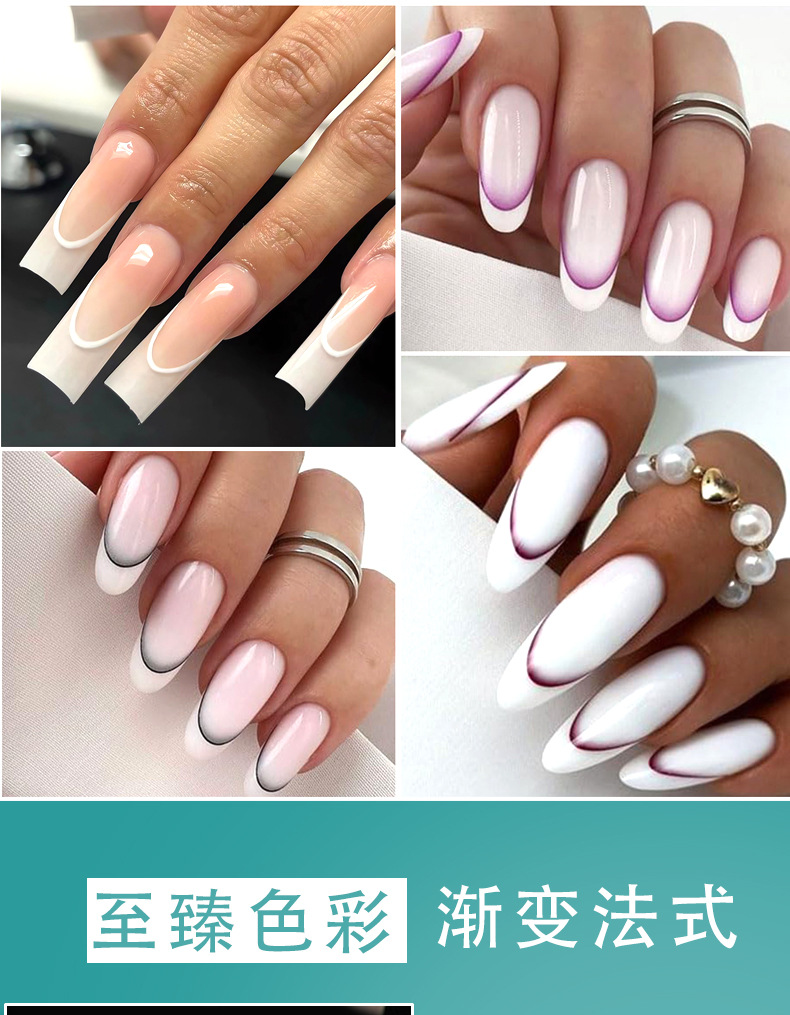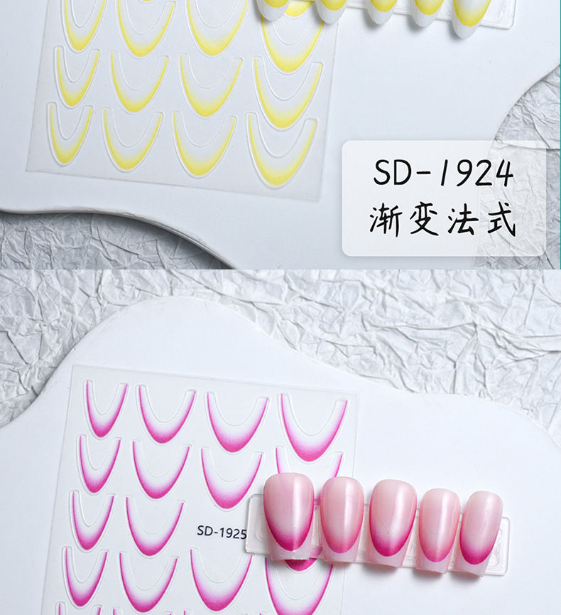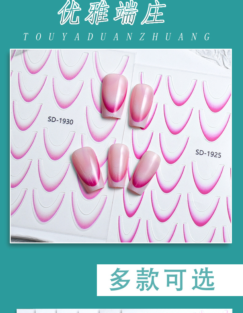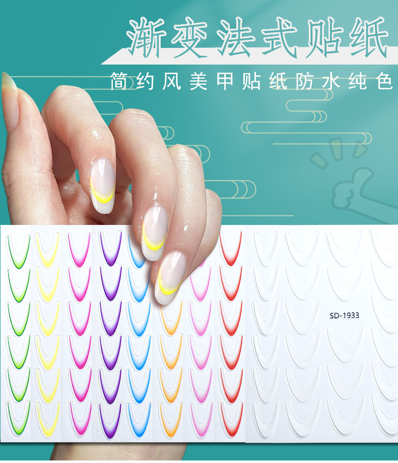 Nuevo estilo transfronterizo pegatinas de uñas de estilo simple impermeable color sólido francés degradado adhesivo de uñas pegatinas de uñas de bricolaje