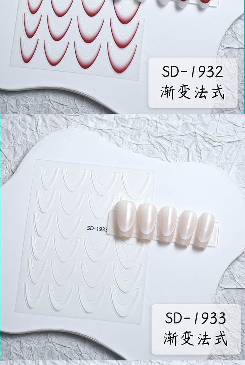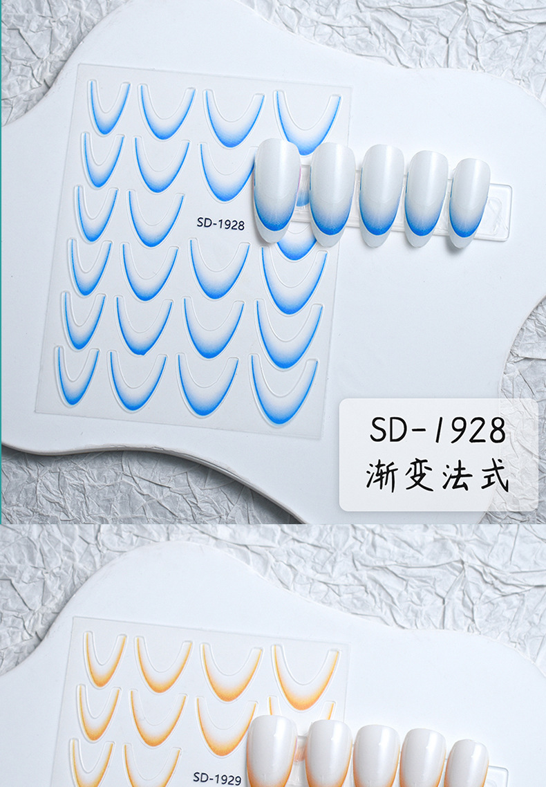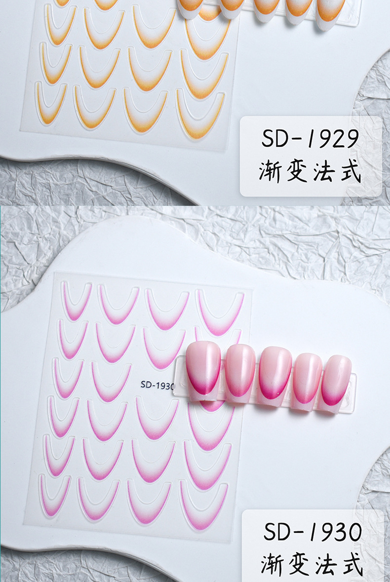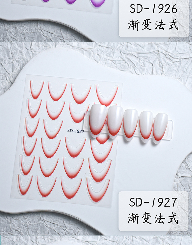 Nuevo estilo transfronterizo pegatinas de uñas de estilo simple impermeable color sólido francés degradado adhesivo de uñas pegatinas de uñas de bricolaje