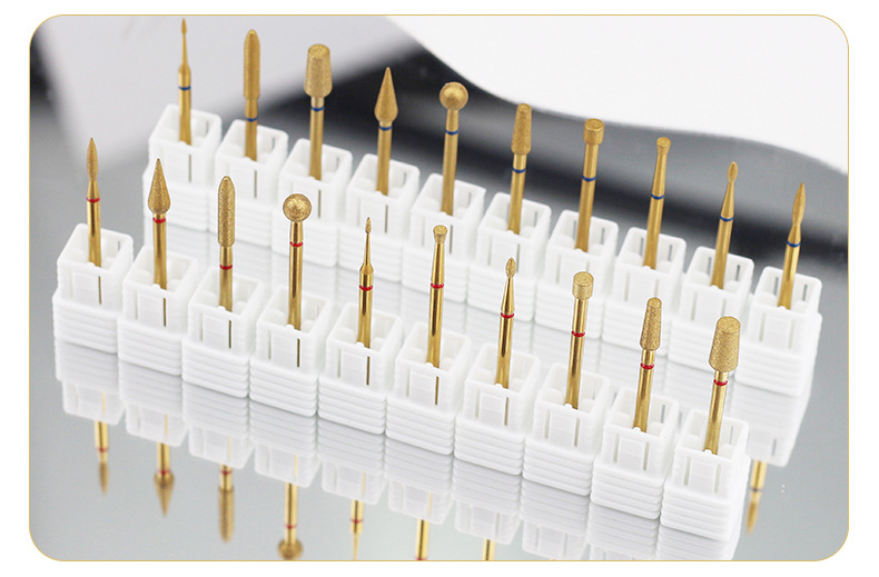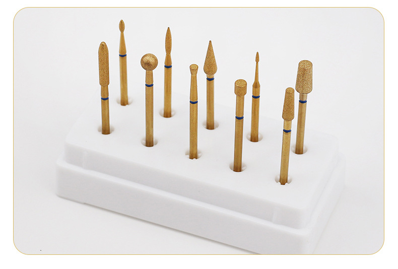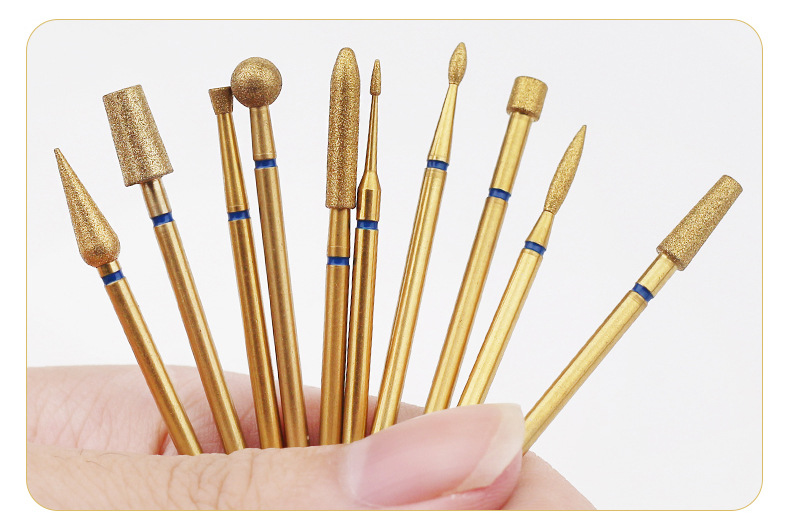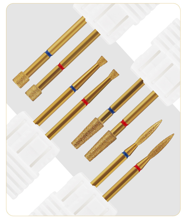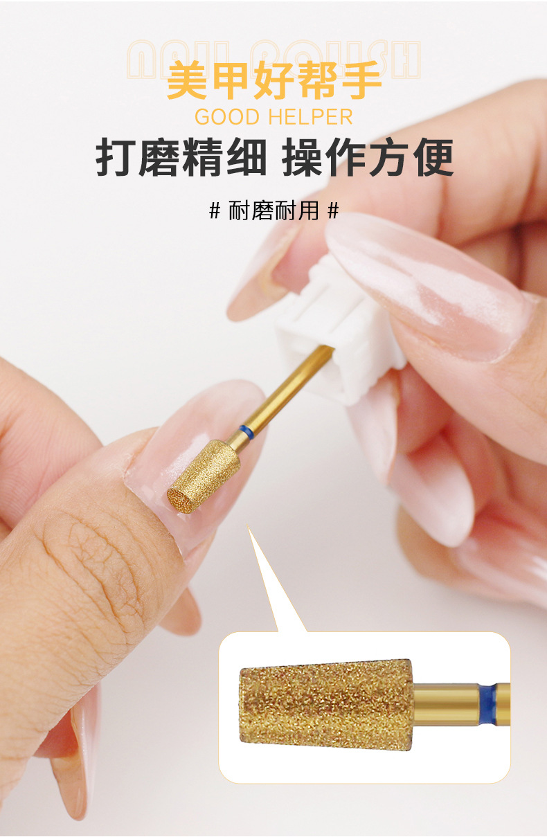 Cabezal de pulido de diamante chapado en oro transfronterizo, exfoliante de bolsillo, pretratamiento, cabezal de pulido largo fusiforme, manicura profesional