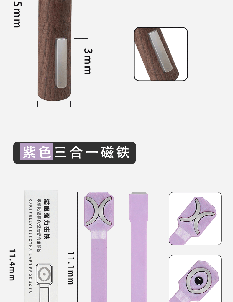 Suministro directo transfronterizo nuevo cigarro multifuncional varilla magnética arte de uñas imán de dos cabezas imán de succión fuerte de ojo de gato cinco en uno