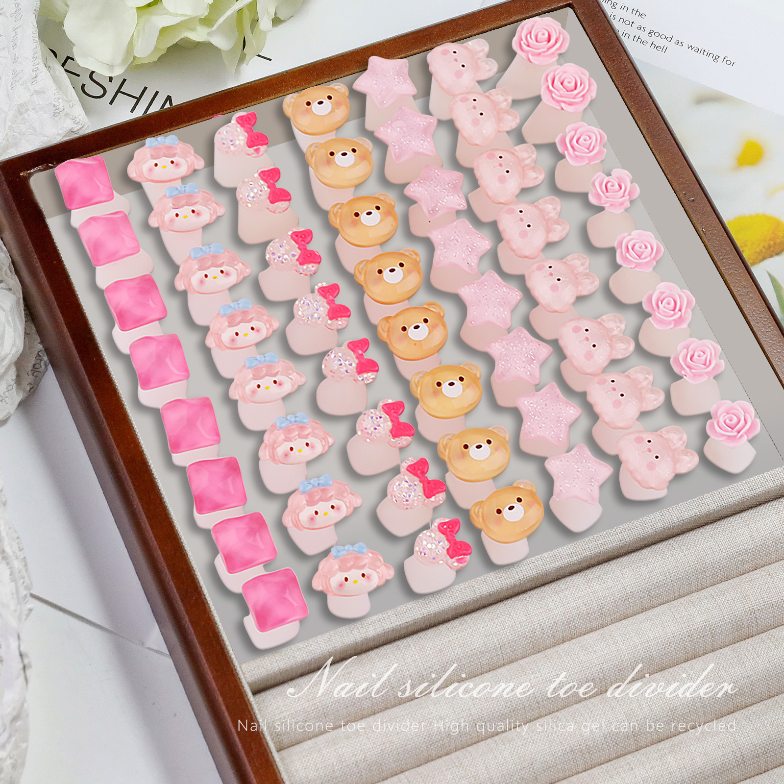 Divisor de dedos de silicona de uñas transfronterizo Divisor de dedos Flor estrella de cinco puntas Herramienta de uñas de dibujos animados Divisor de dedos