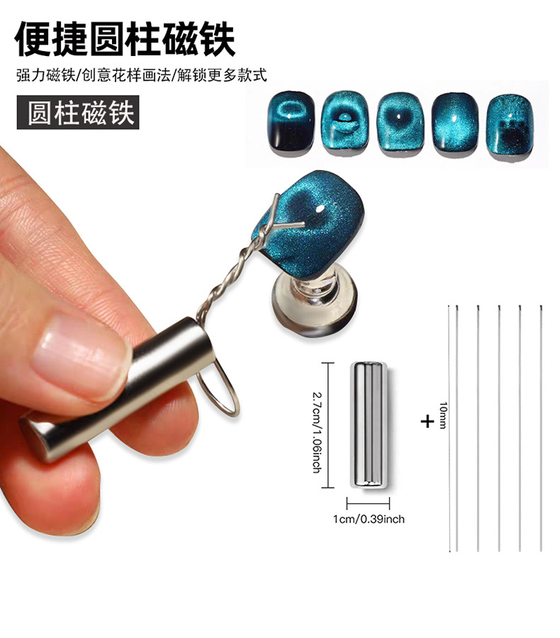 Mejora de estilo de imán de ojo de gato de uñas, elegante ojo de gato cilíndrico multifuncional, herramienta especial para uñas de barra de imán súper fuerte