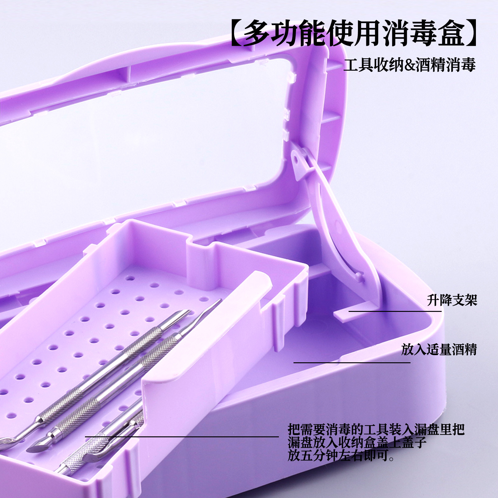 Caja de desinfección de uñas transfronteriza, caja de limpieza de herramientas de pestañas, limpieza de alcohol, remojo, caja de almacenamiento de herramientas de uñas al por mayor