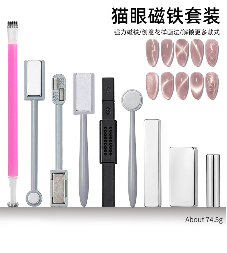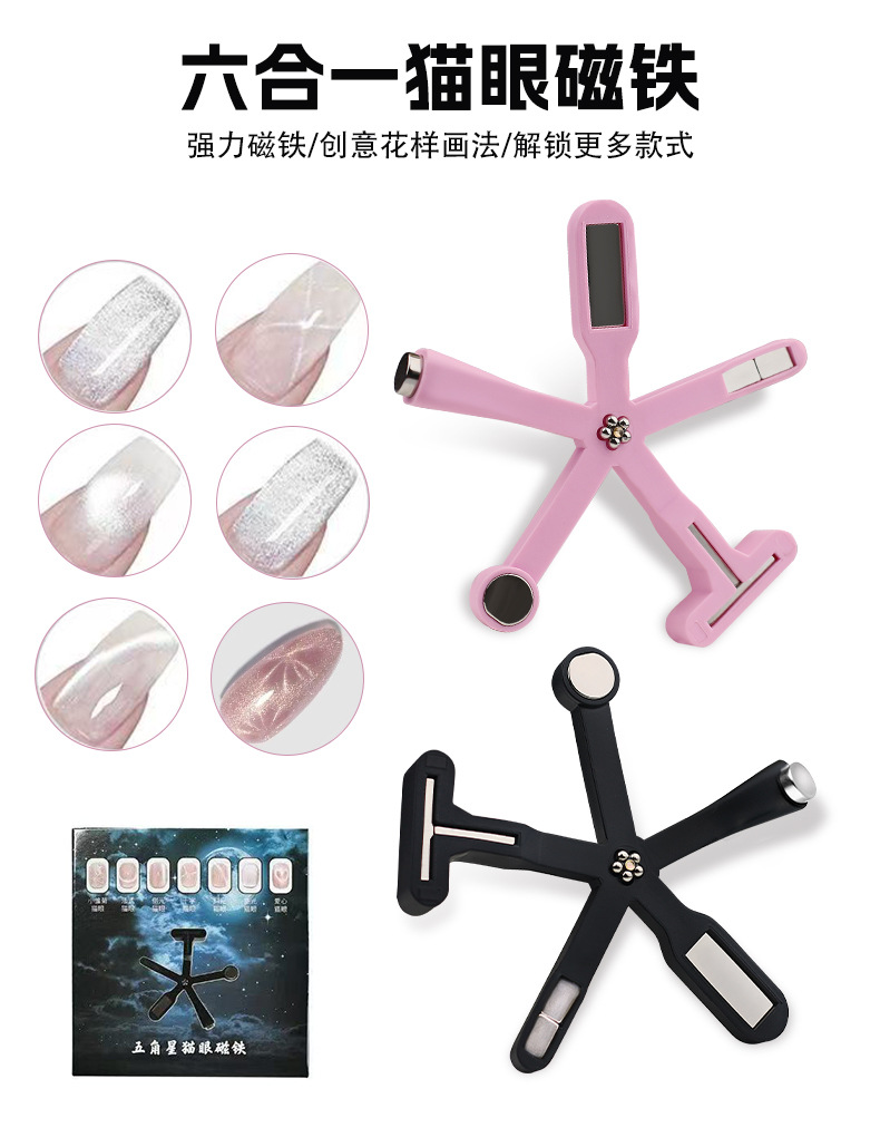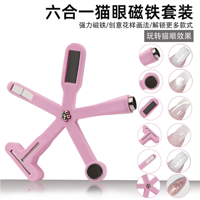 Manicure multifuncional seis en uno imán en forma de cruz fuerte multipatrón ojo de gato pegamento de manicure herramienta de manicure