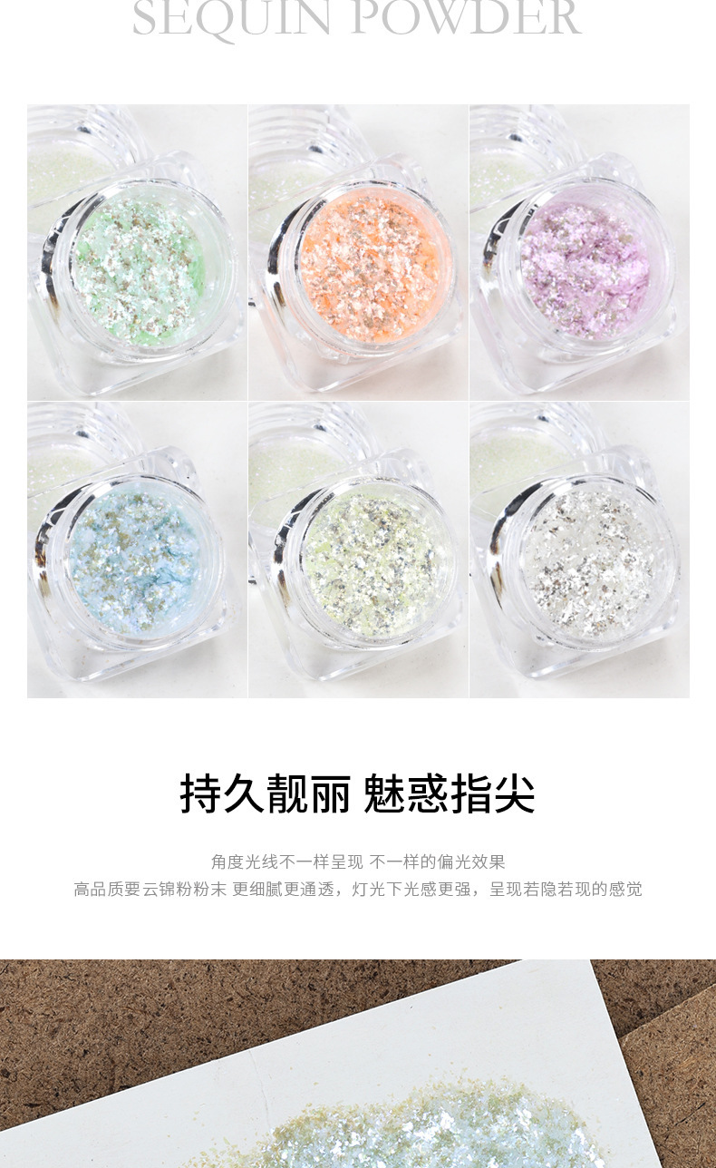 Internet celebridad nuevo ultrafino uñas arte brocado en polvo lentejuelas brillo caja del Tesoro flash gradiente polvo mezclado uñas arte joyería al por mayor