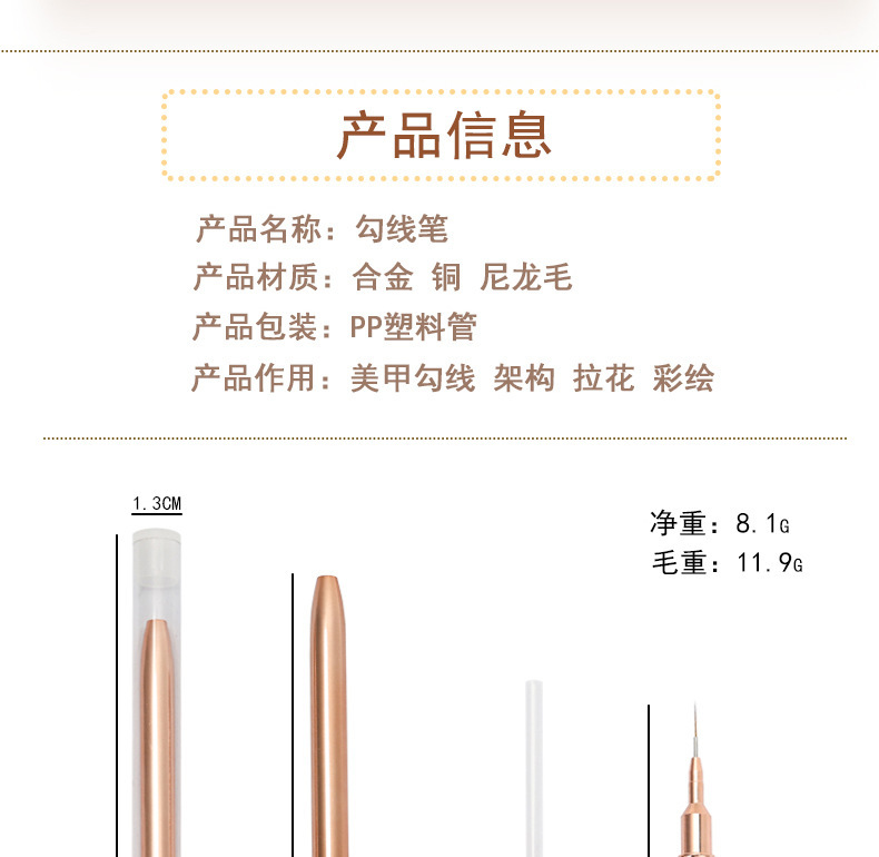Cross-border nuevo tubo de aguja de uñas pluma de dibujo ultra-fino gancho pluma línea pintada tienda de uñas cepillo especial solo