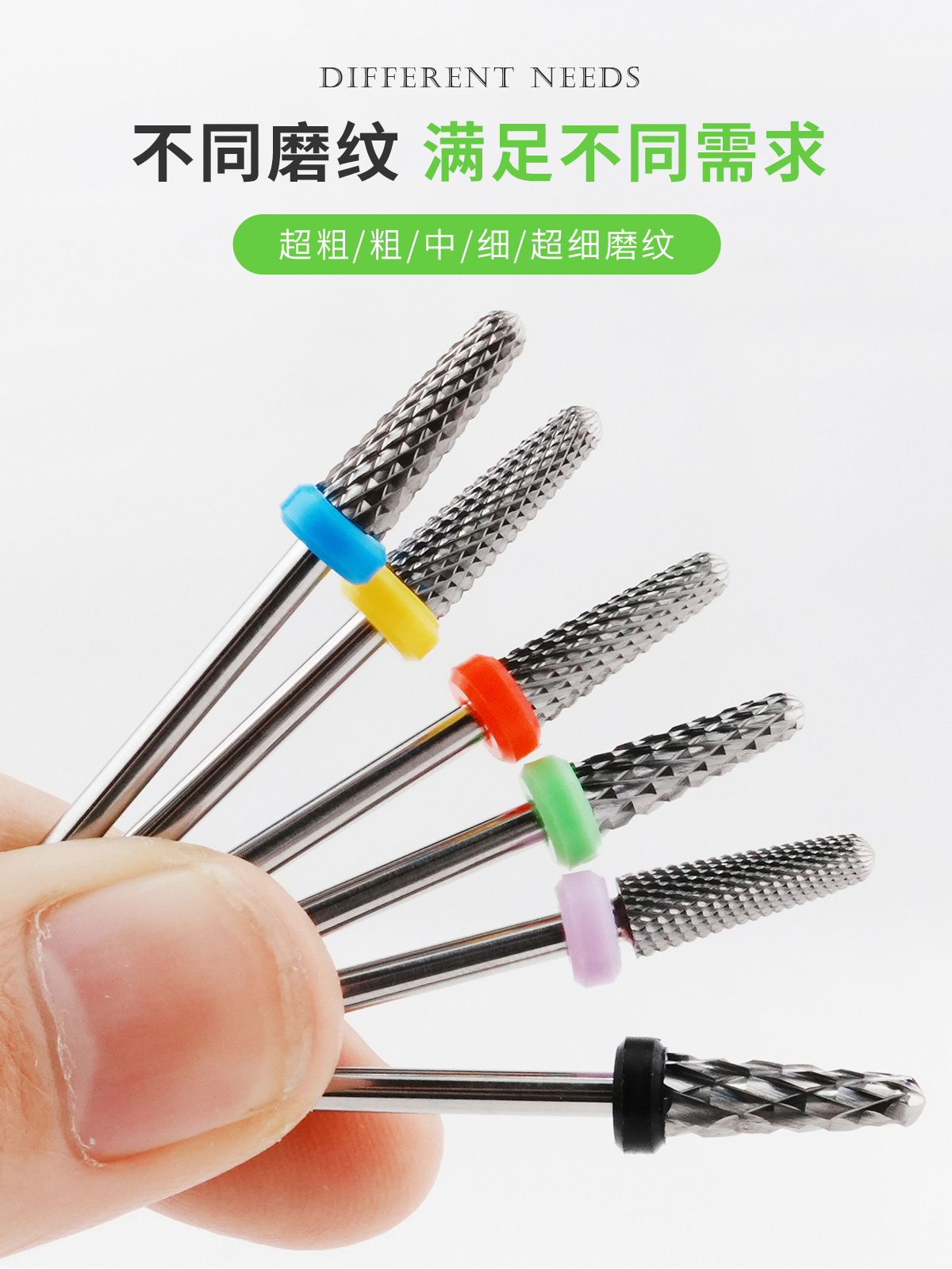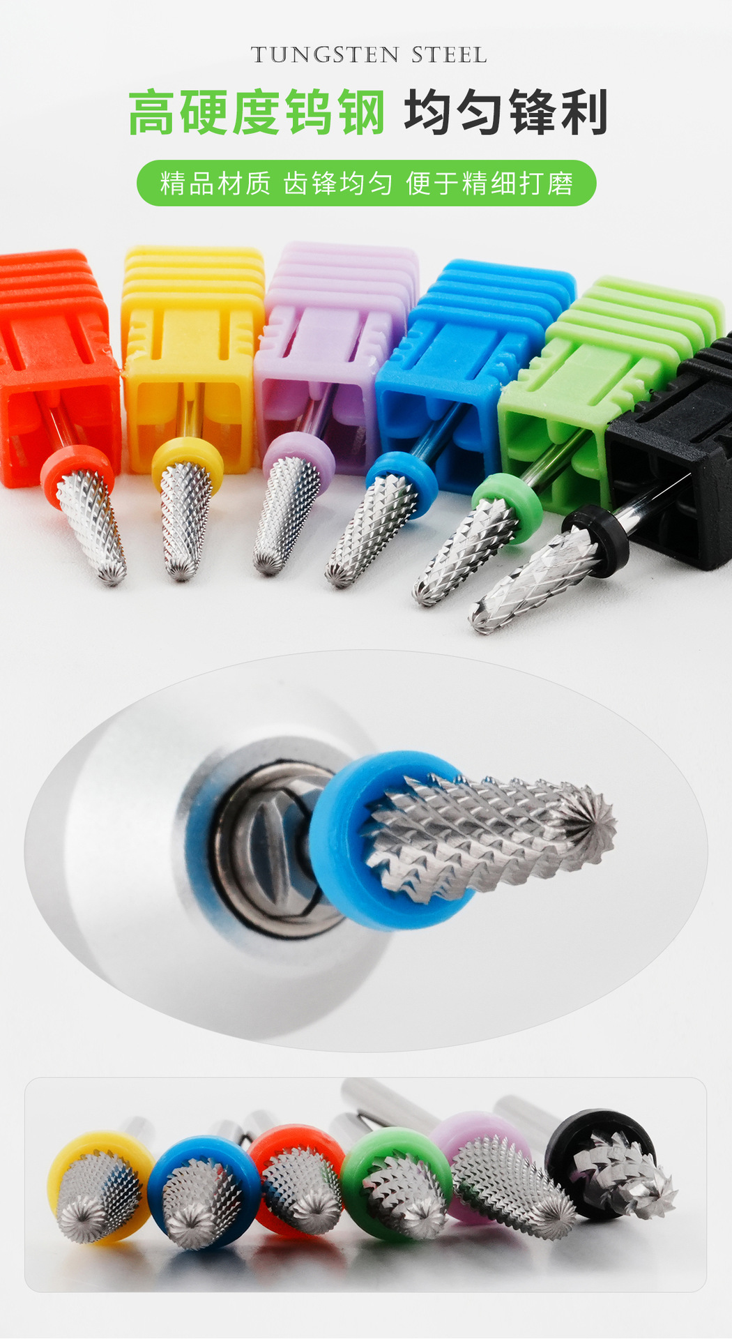 Amazon nueva cabeza de 4 mm dientes abiertos 5 en 1 cabeza de molienda de acero de tungsteno de manicura de eliminación de uñas de piel muerta de forma de acero duro