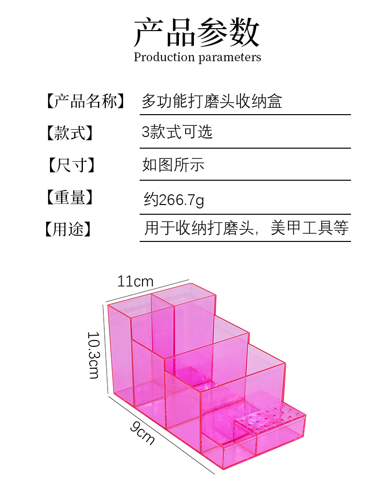 Manicura nueva lijadora de uñas portátil rejilla de colocación cabezal de lijado caja de acabado herramientas de maquillaje caja de almacenamiento multiusos