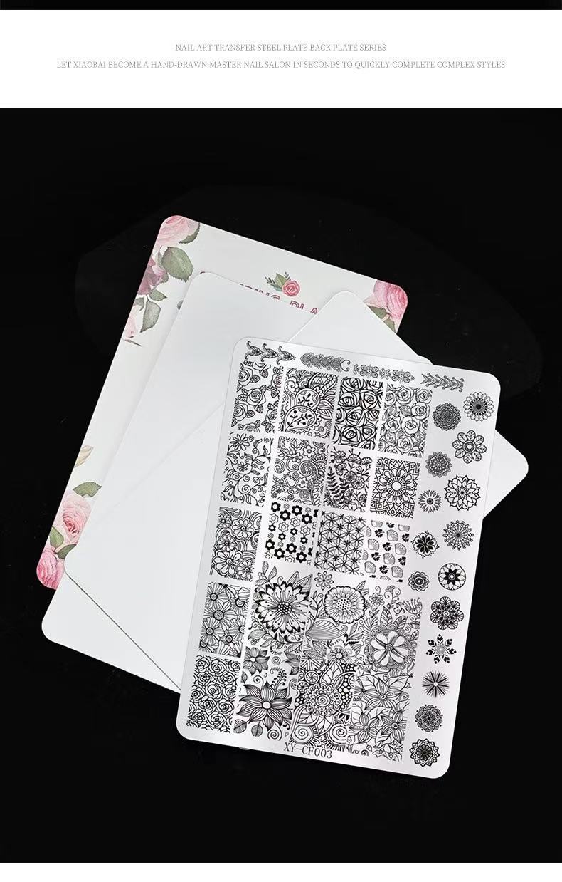 Placa de acero de impresión de uñas Latin French Full Flower Plantilla de estilo nacional Tablero de sello de uñas de acero inoxidable Herramienta de transferencia de bricolaje