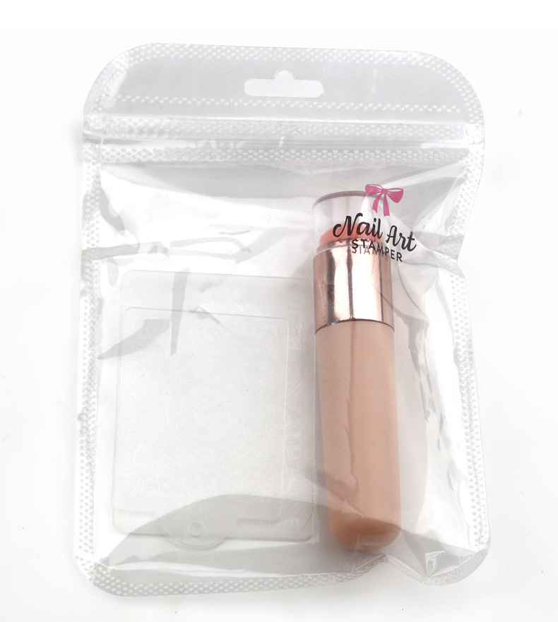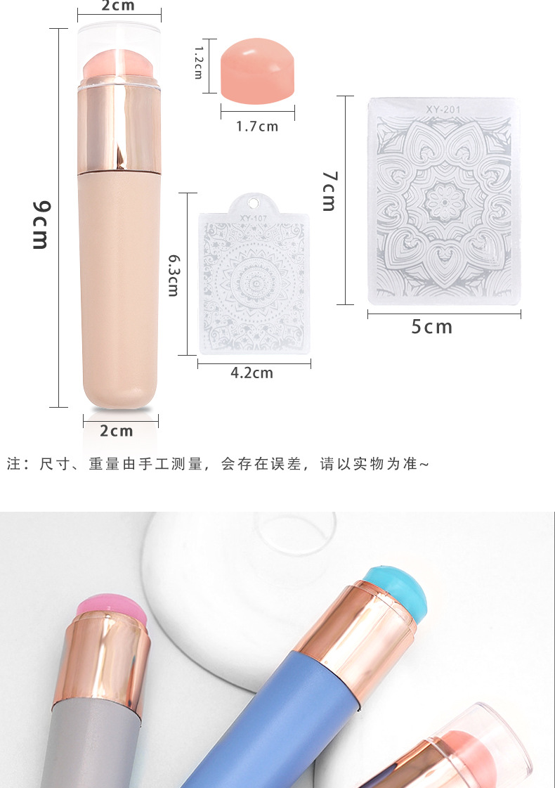 Manicura florece la herramienta de pegamento de palmaditas Cepillo de silicona Q punta elástica suave impresión en polvo multifuncional portátil con sello de tapa