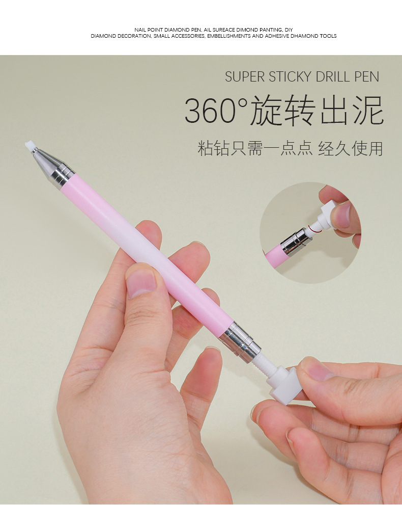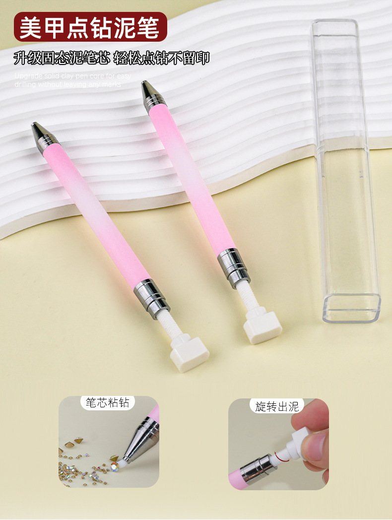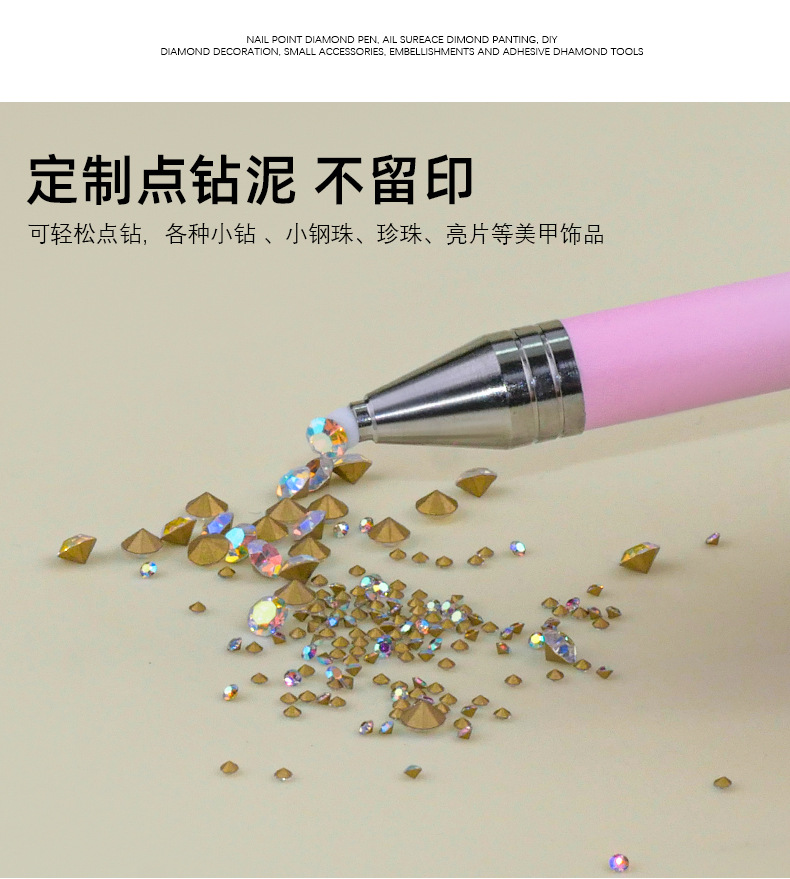 Nuevo tipo de pin de uñas rotativo empujando el pin de adhesión crayón de uñas con diamante artefacto