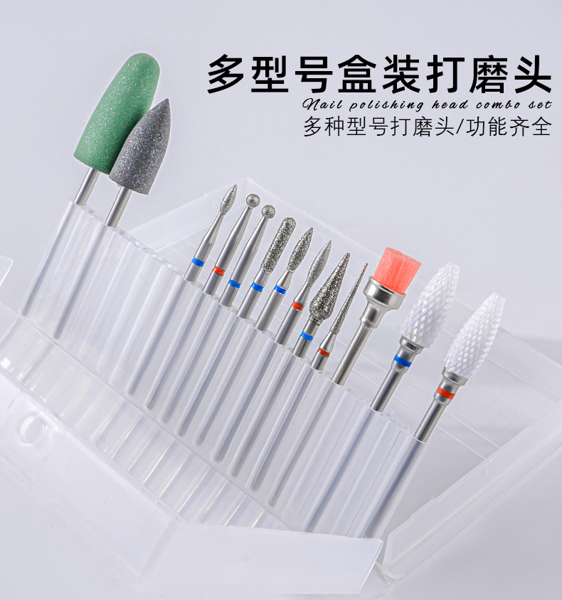 Cabeza de esmerilado de diamante de cerámica para uñas, bolsillo, piel muerta, pretratamiento, cabeza de esmerilado en forma de lanzadera larga, juego de manicura
