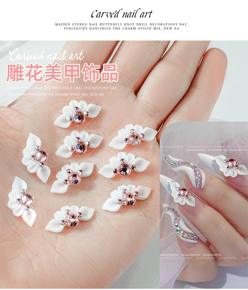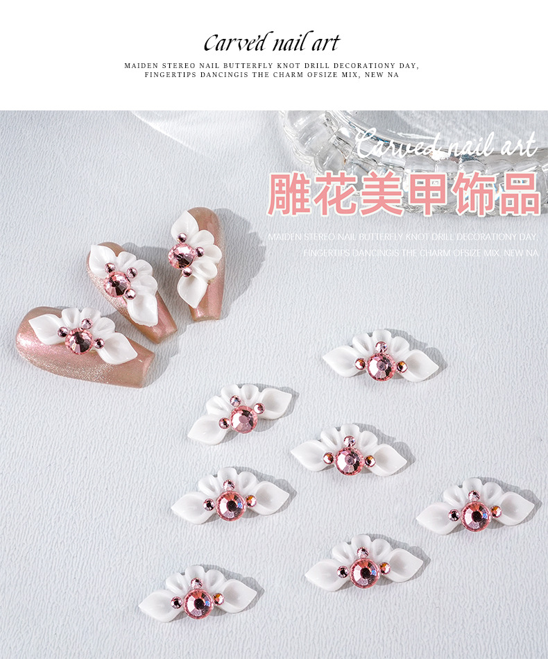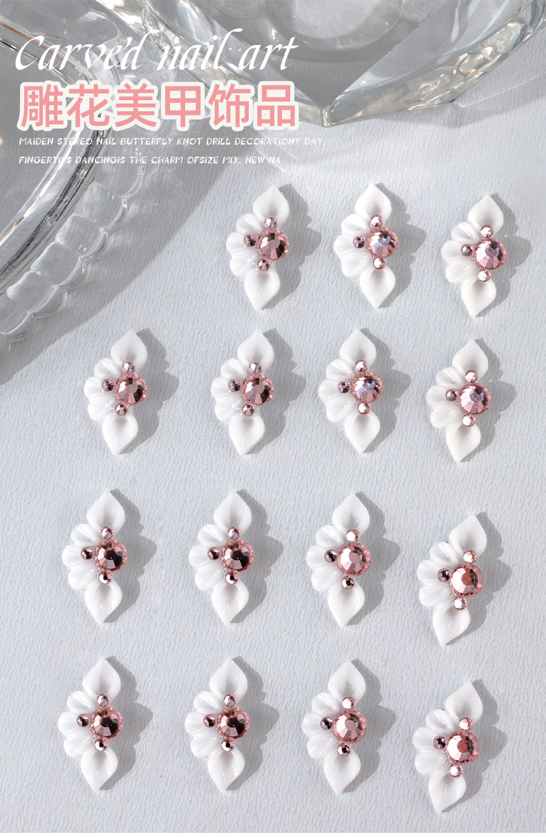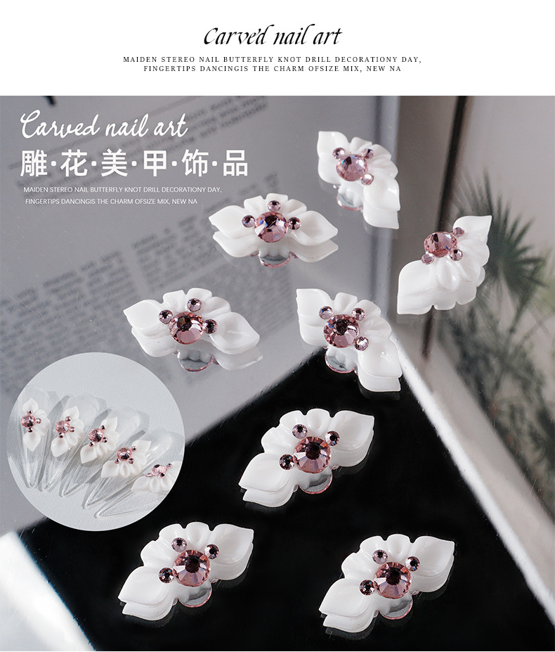 Nuevas joyas de uñas talladas de celebridades de Internet, pilas tridimensionales de diamantes, pétalos de diamantes, decoración de uñas, accesorios de resina al por mayor
