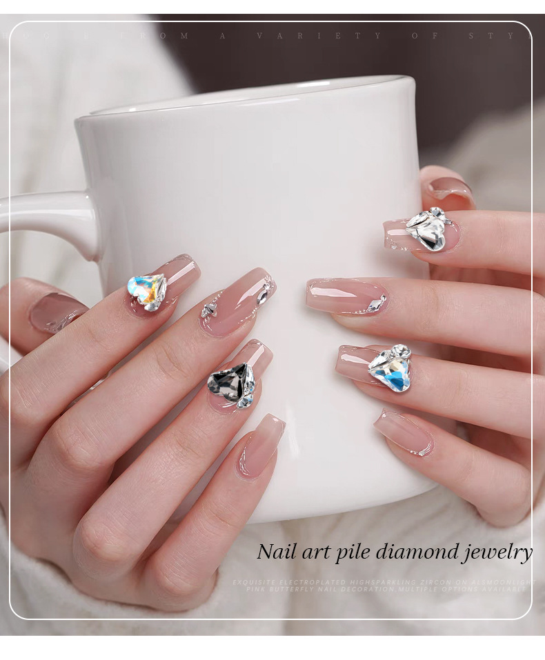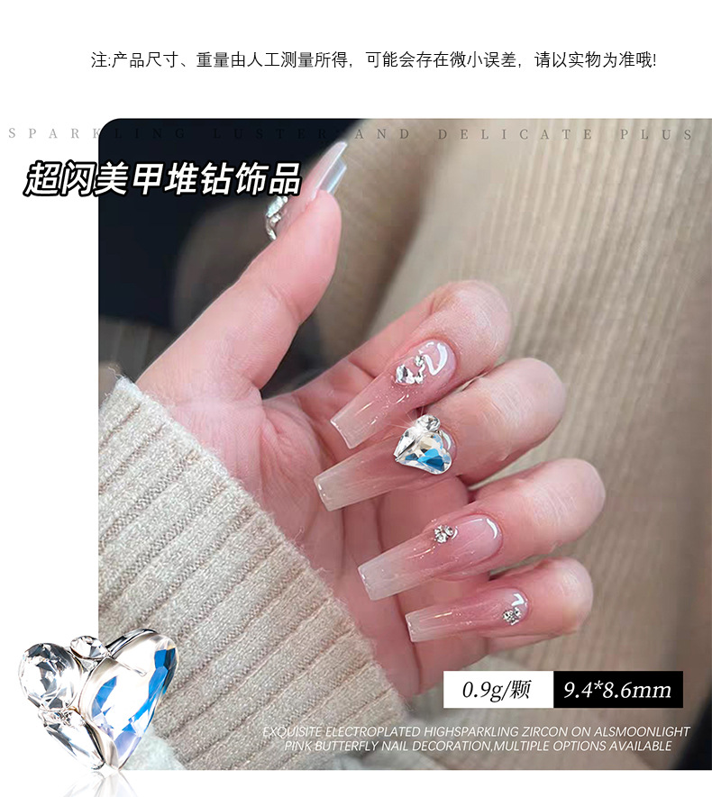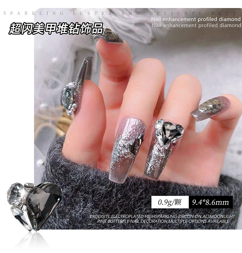 Celebridades de Internet artículos de uñas calientes amor montón de diamantes super flash 2025 nuevo producto terminado hecho a mano con uñas grandes diamantes