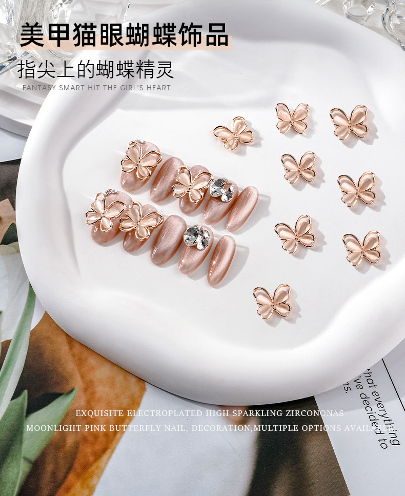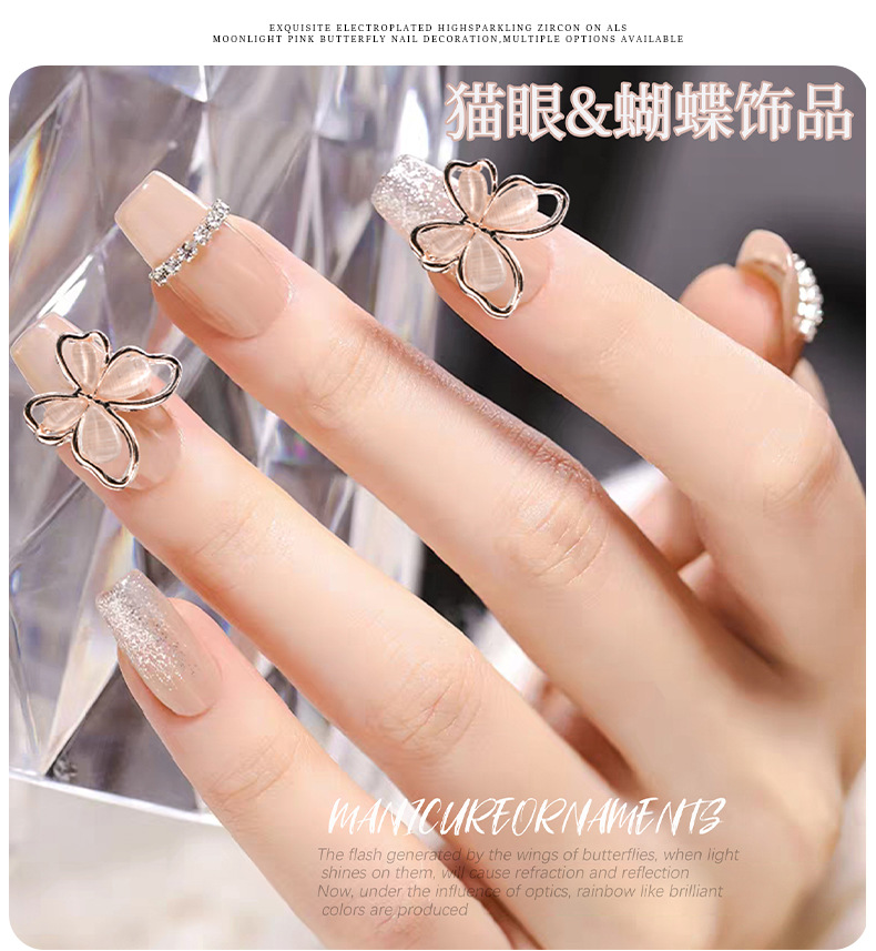 Manicure hueco ojo de gato malla aleación de sangrana joyería de manicure oro de lujo metal tridimensional decoración de uñas