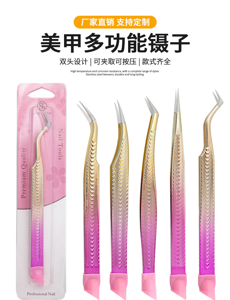Pinzas multifuncionales de doble cabeza con varilla de silicona para herramienta de manicuría especial para injerto de pestañas