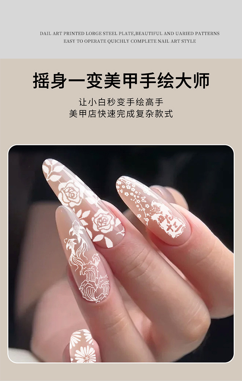 Manicure impresión placa de acero molde pétalos dorados encaje mariposa estilo nacional herramienta de transferencia de bambú sello de silicona