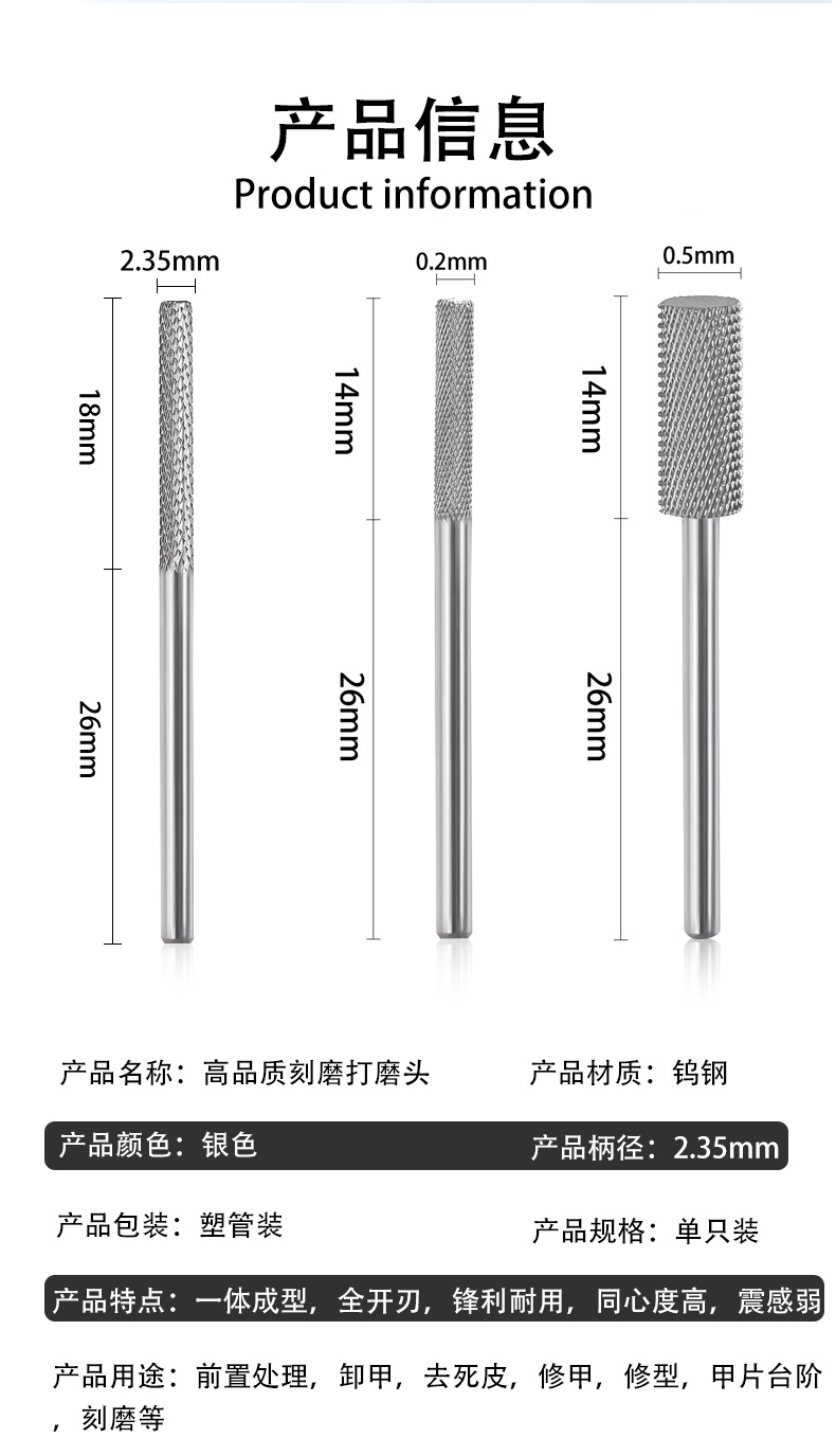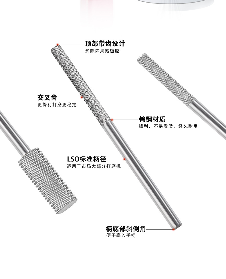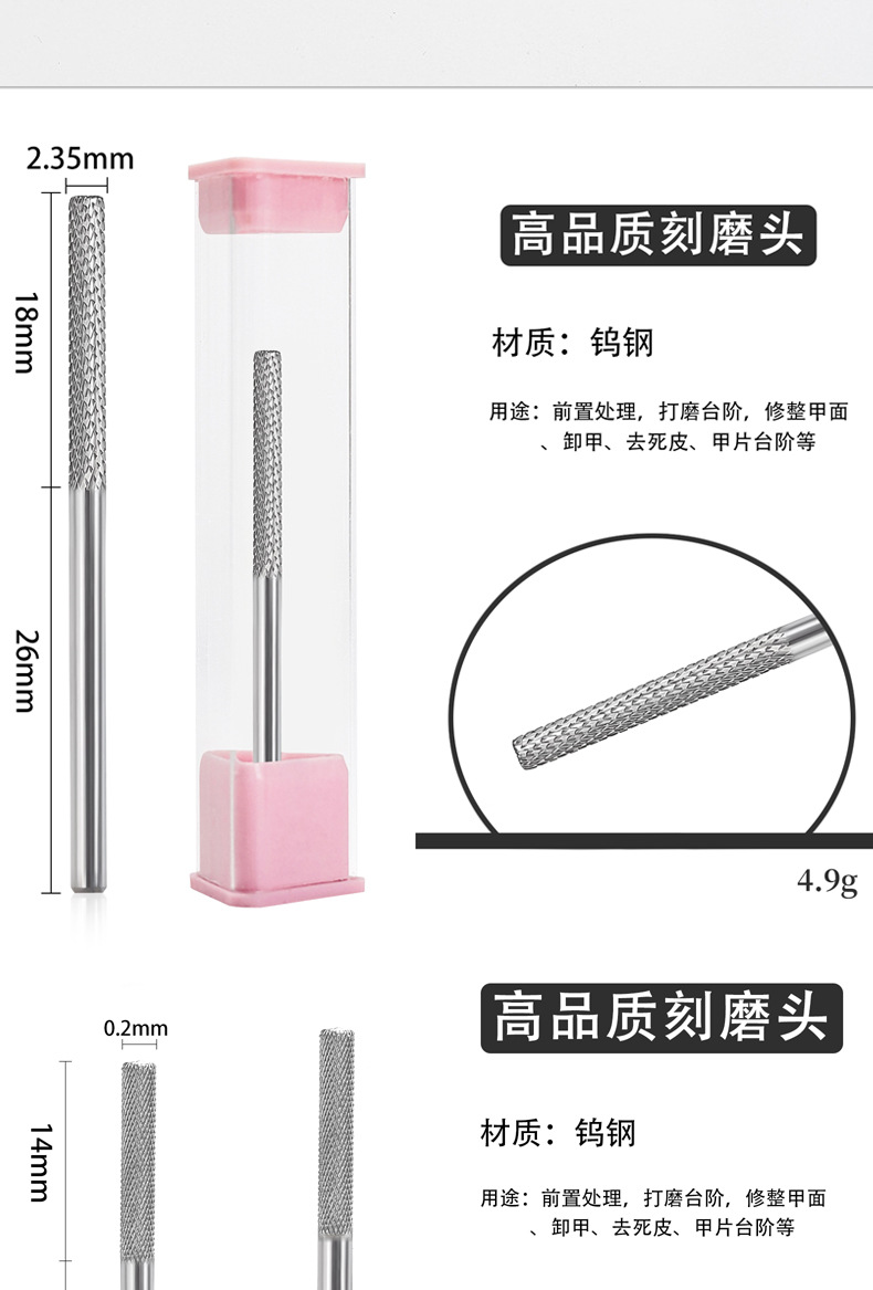 Uña de tungsteno acero molienda varilla de molienda de uñas escalonada molienda pre-tratamiento de eliminación de uñas molienda de superficie herramienta de manicuras
