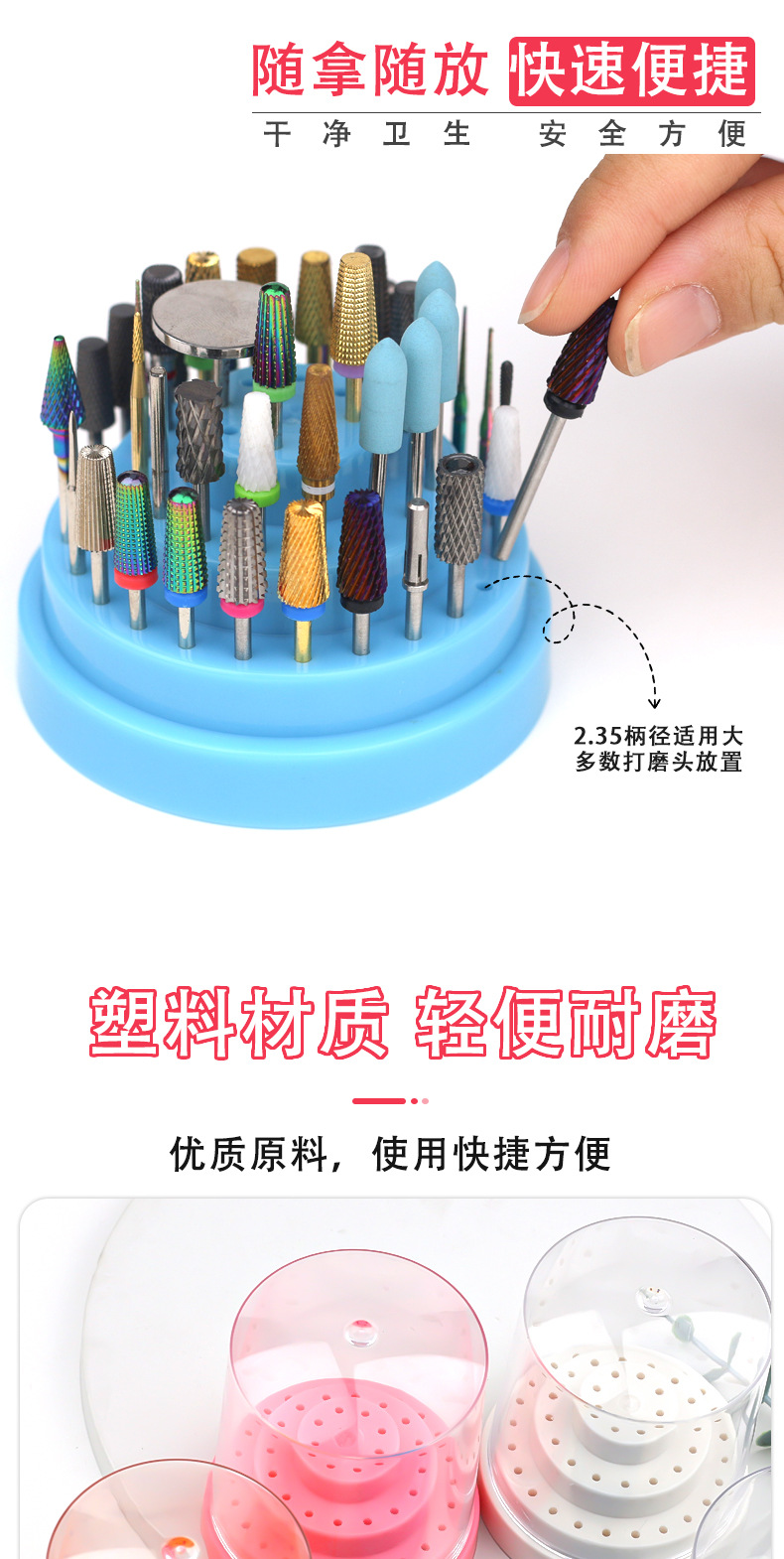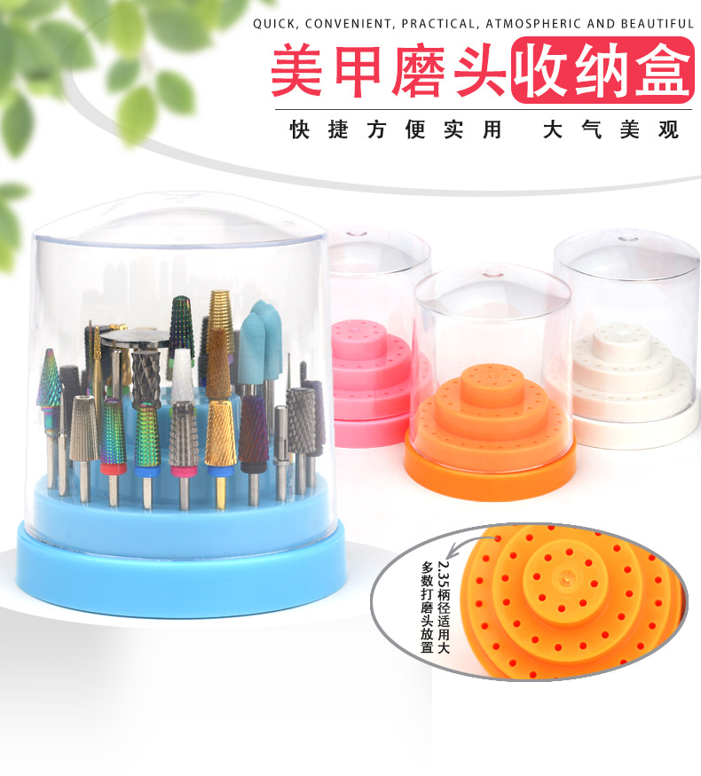 Caja de almacenamiento de cabezal de pulido de uñas 48 orificios soporte de exhibición de conector de cabezal de pulido de uñas caja de exhibición de lápiz en stock