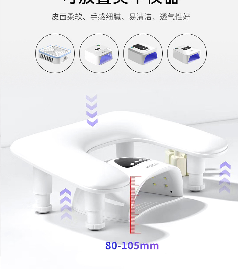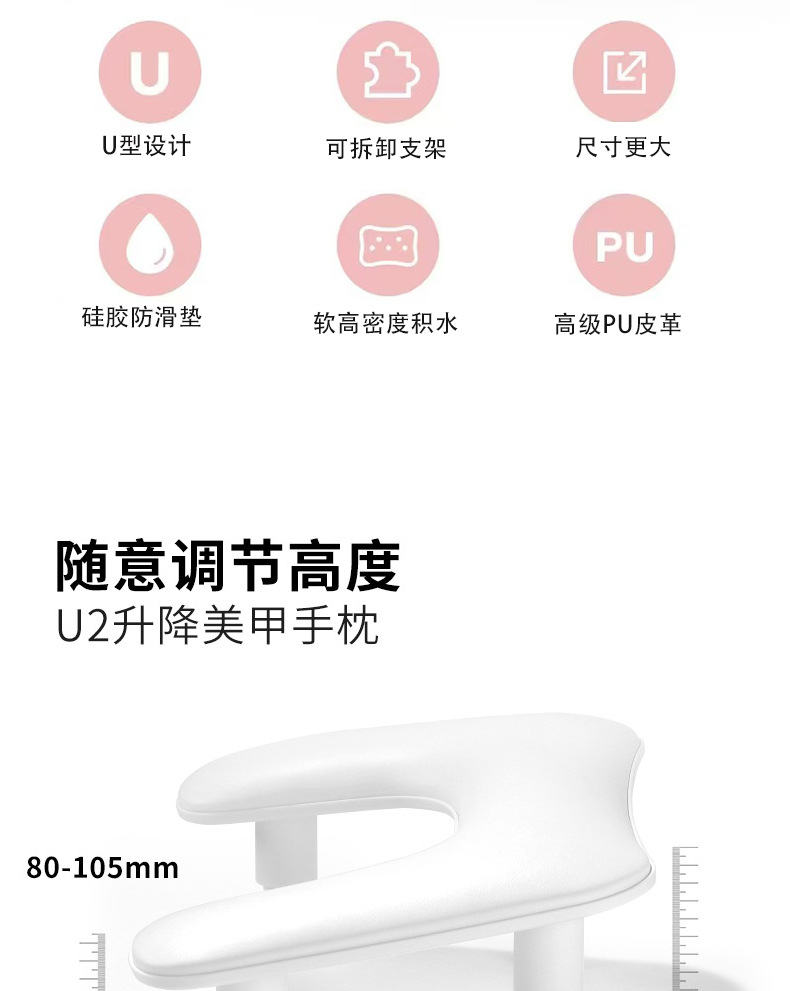 Almohada de mano para uñas de dos manos Altura ajustable Diseño de sueño inclinado portátil Piel de cuero PU Cómoda almohada de mariposa rusa