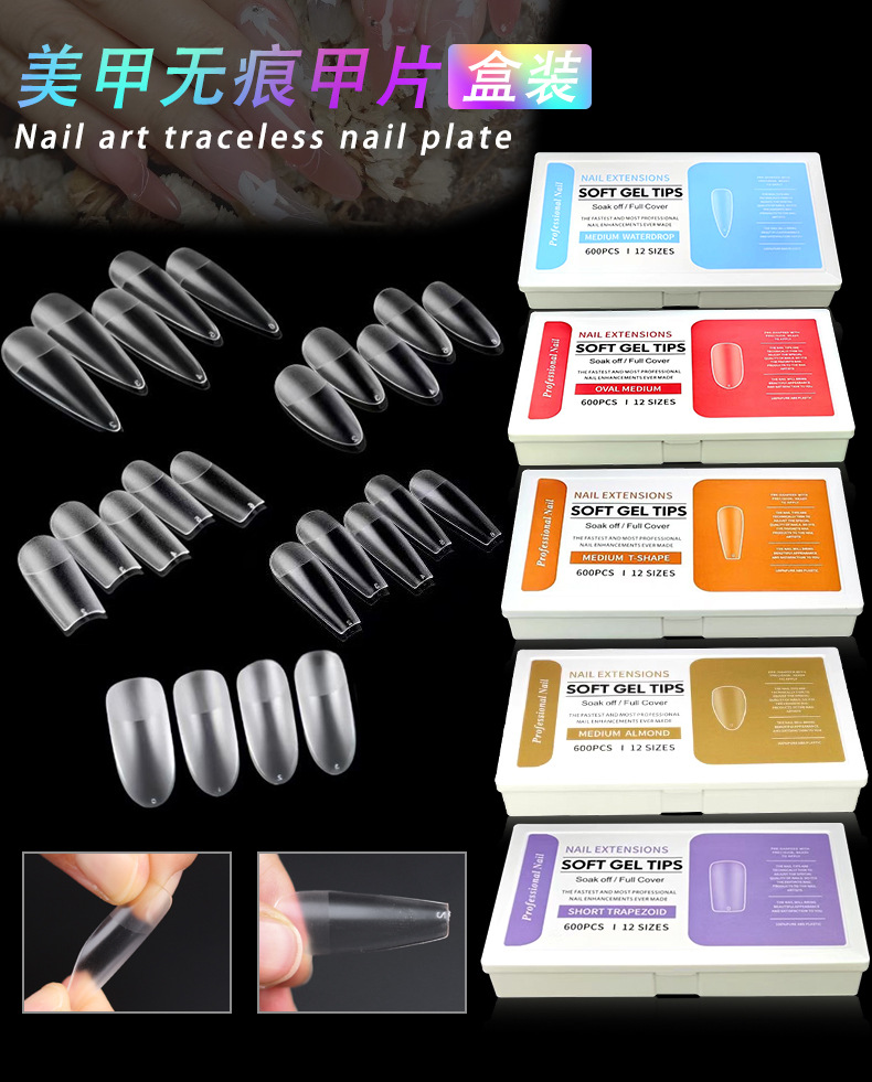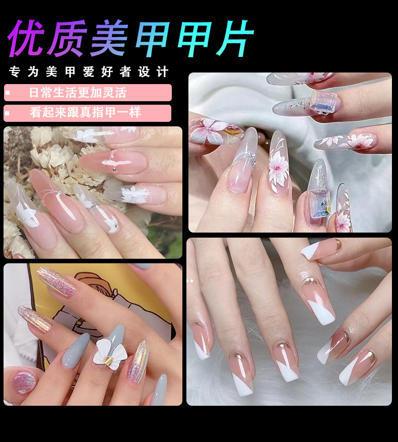 Explosiones transfronterizas de porcelana blanca caja de manicuras esmaltado ultrafino sin marcas sin molienda de grabado desgaste manual manicuras falsas al por mayor
