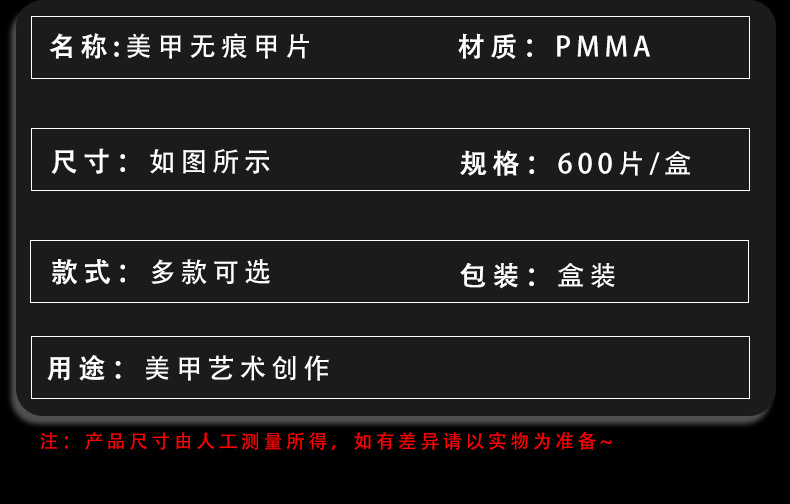 | Número de artículo | 600 comprimidos de uñas sin marcas |