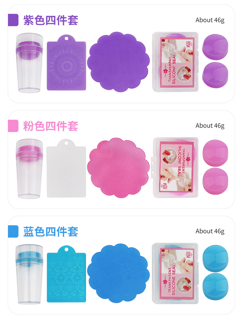 Nuevo juego de raspador de sello de 4 piezas con estampado de uñas francés, cabezal de sello de silicona multiusos, herramienta de transferencia de pintura en stock