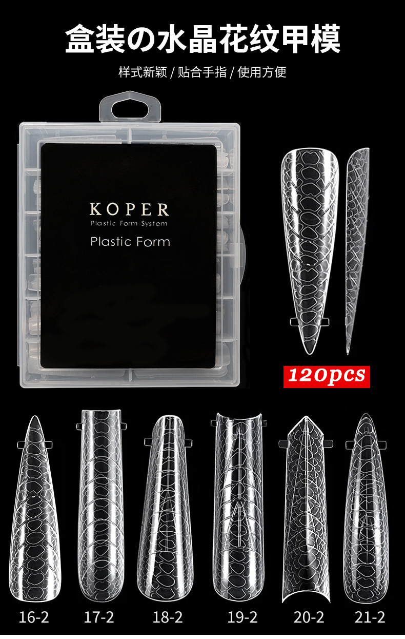 Patrón de uñas transfronterizas cristal molde de uñas cristal extensión sin soporte de papel fototerapia rápida extensión de uñas 120 piezas en caja
