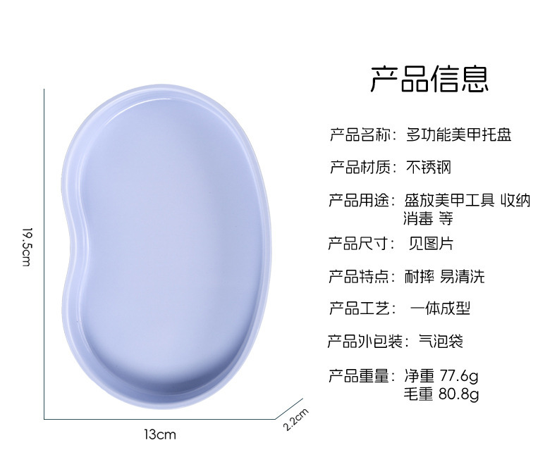 Bandeja de joyería de acero inoxidable bandeja de almacenamiento de herramientas de escritorio de manicura bandeja de cosméticos caja de desinfección bandeja de manicura multifuncional