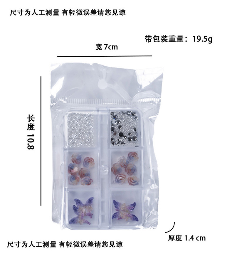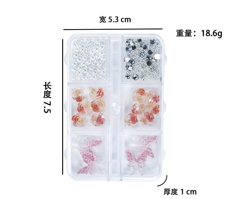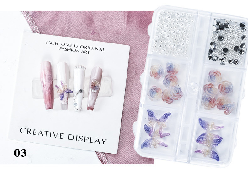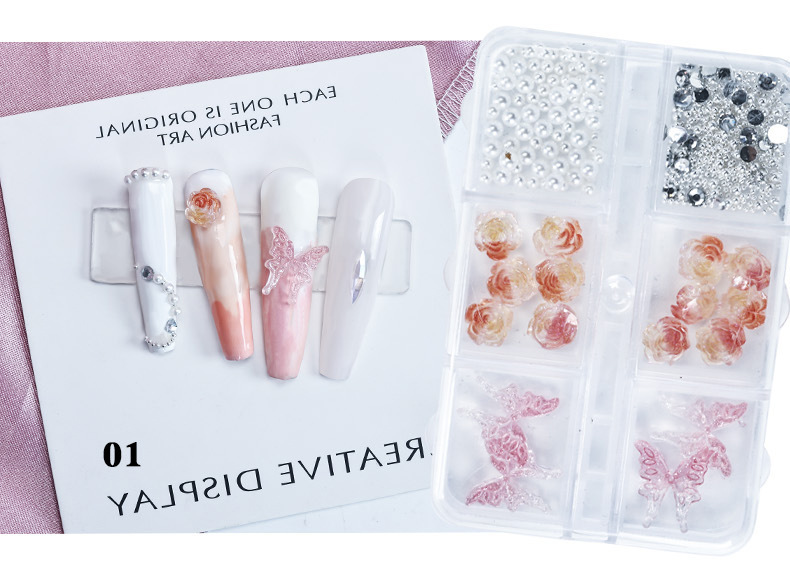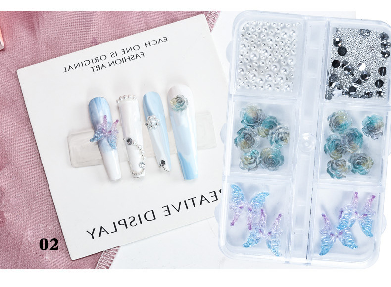 Transfronteriza nueva manicura tridimensional Camelia joyería líquido gradiente mariposa pequeña bola de acero perla mixta accesorios de uñas