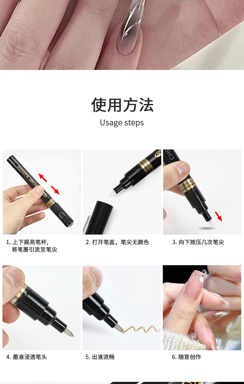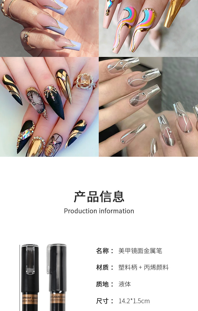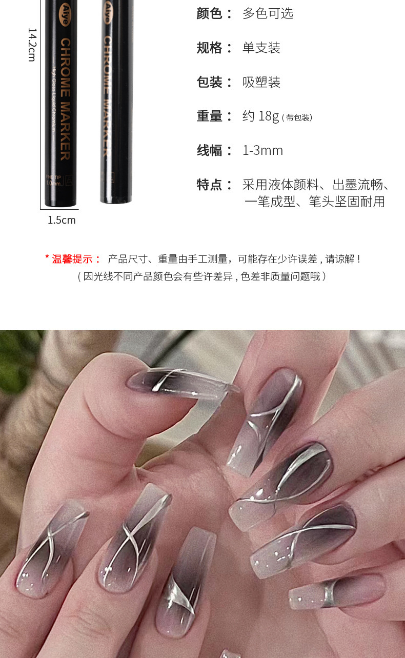 Nail Art graffiti pen metal highlight Mirror Mark pen espejo mágico DIY pintura pluma nail art pen tienda de uñas pluma especial